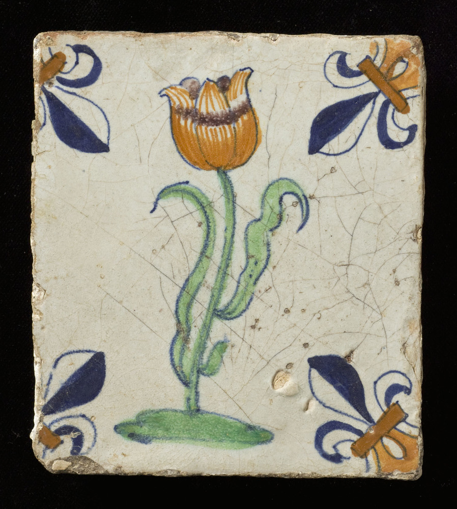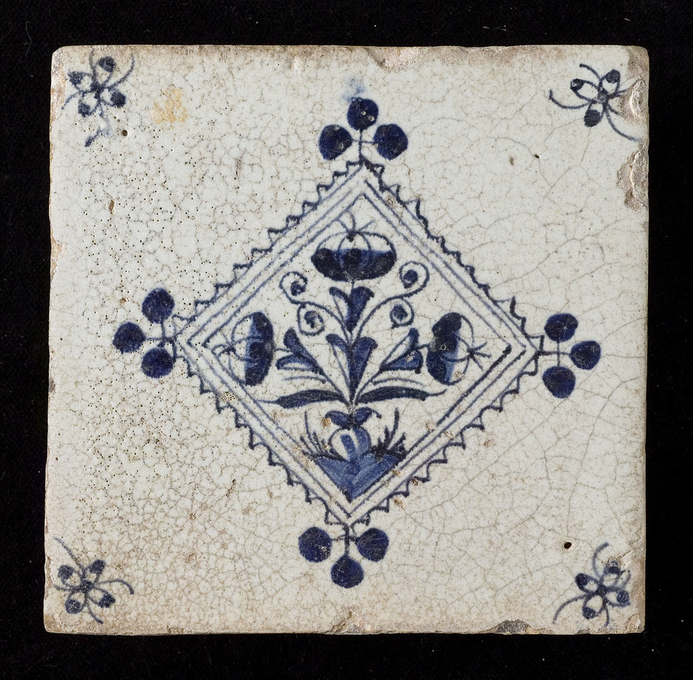 Tegel van keramiek, gemaakt in Nederland ca. 1660-1700