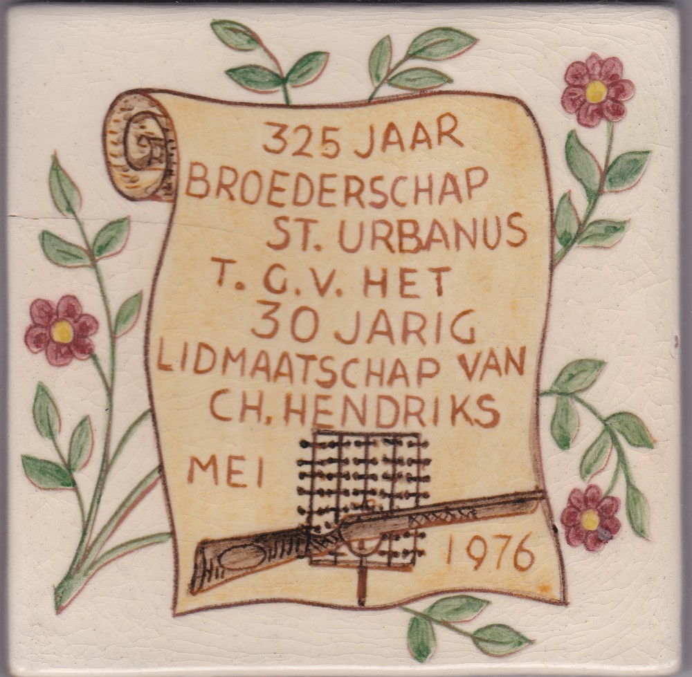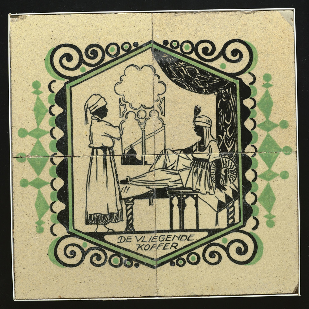 Tegel van keramiek in transferdruk, voorstellende: m...