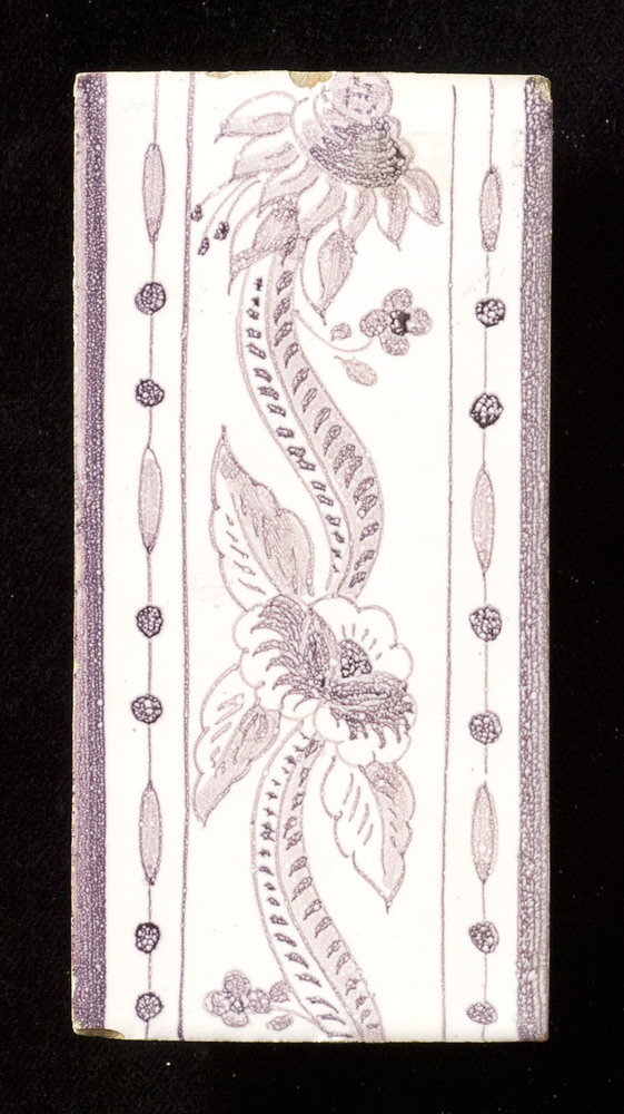 Randtegel in tinglazuur, voorstellende bloemrandje, ...