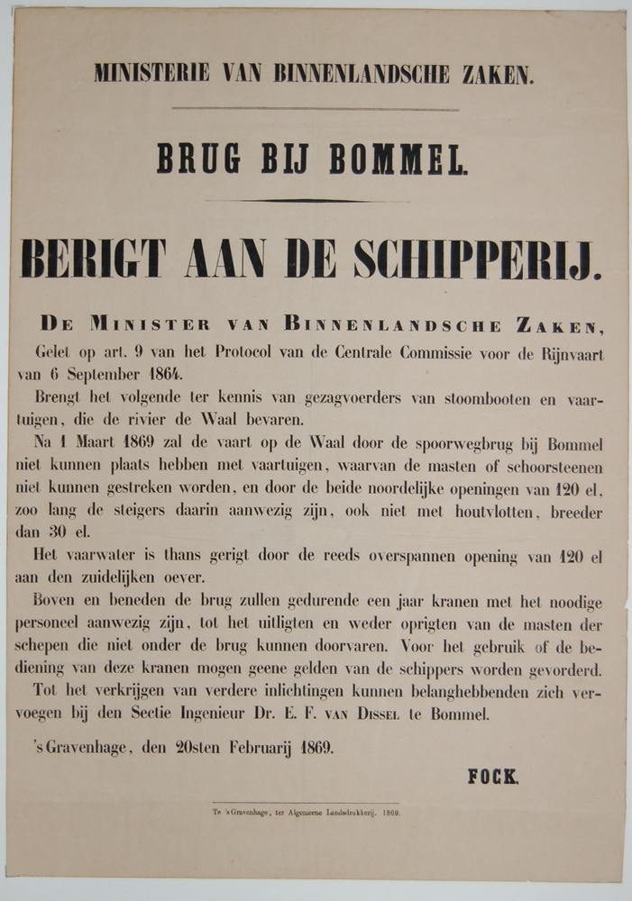 Pamflet, bericht aan de schippers inzake bouw spoorb...