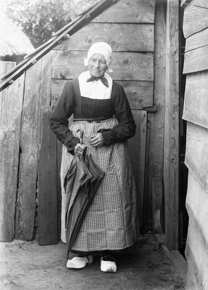 Portret ten voeten uit van een Veluwse boerin met pa...