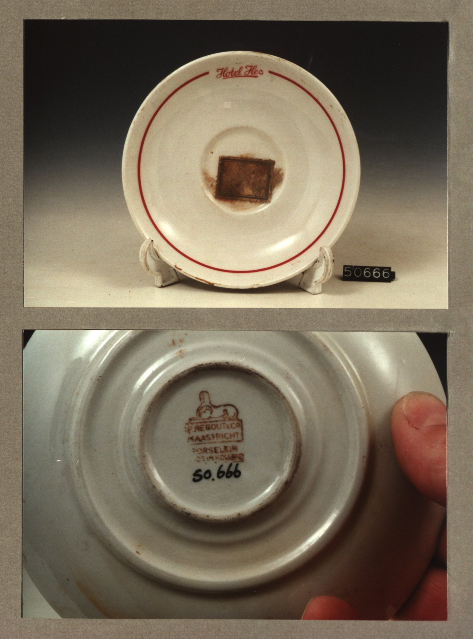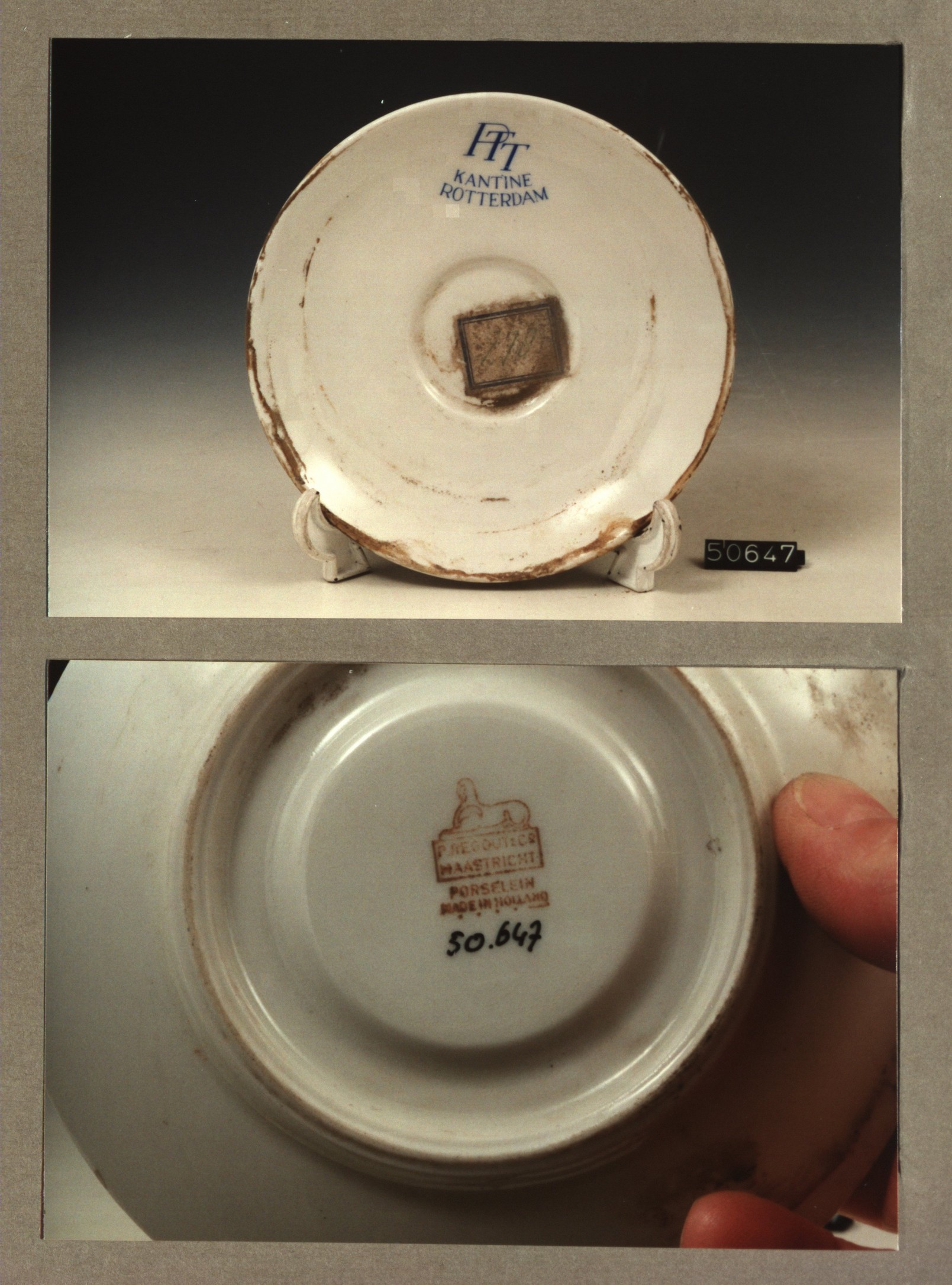 Schotel - plat, model A met decor PTT kantine Rotterdam