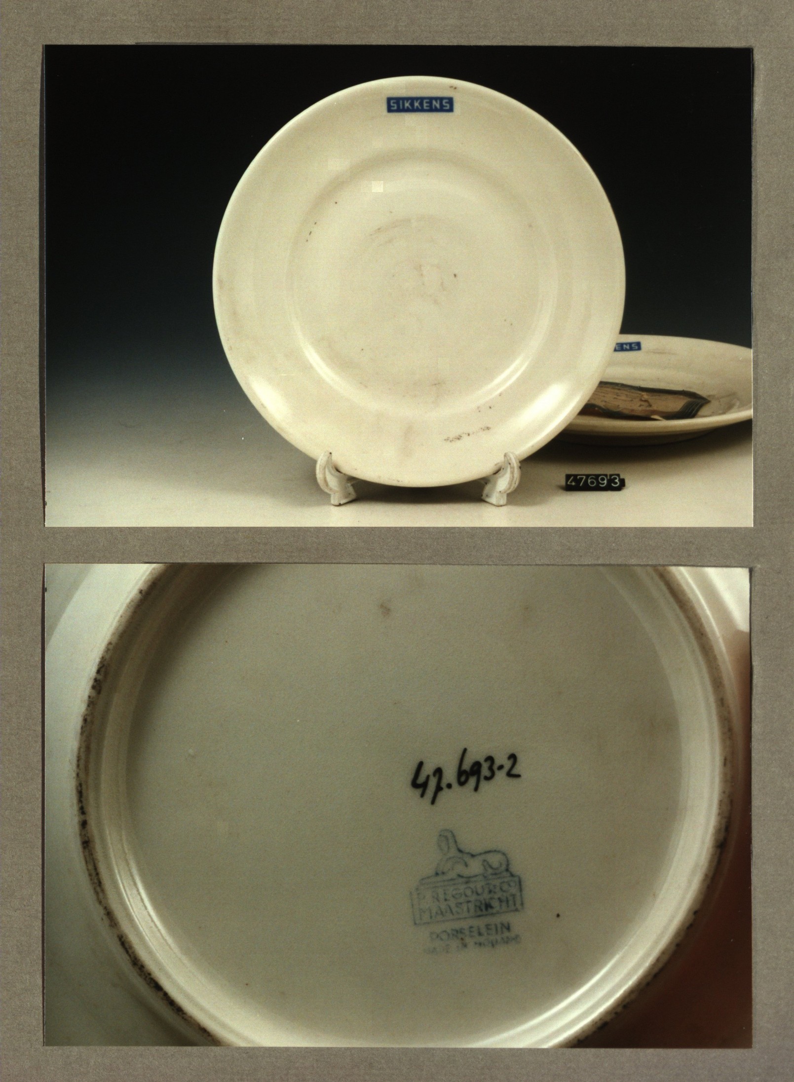 Plat bord, model P met decor Sikkens lak fabriek