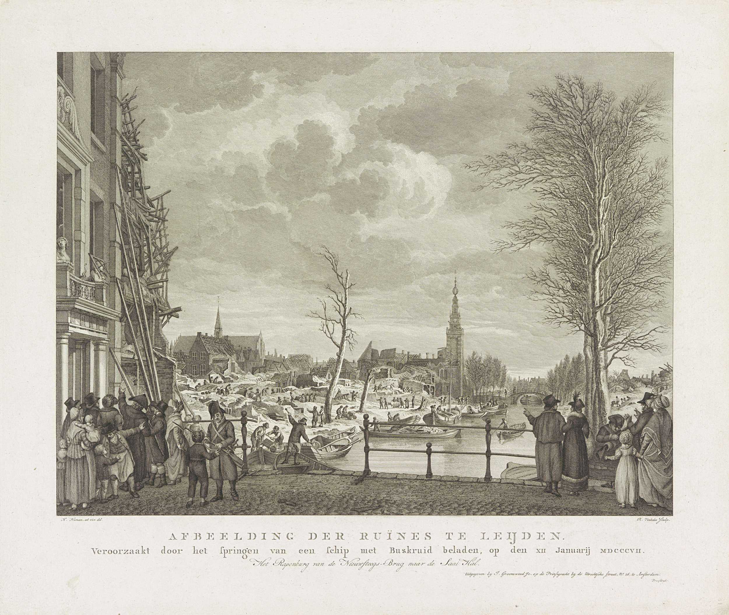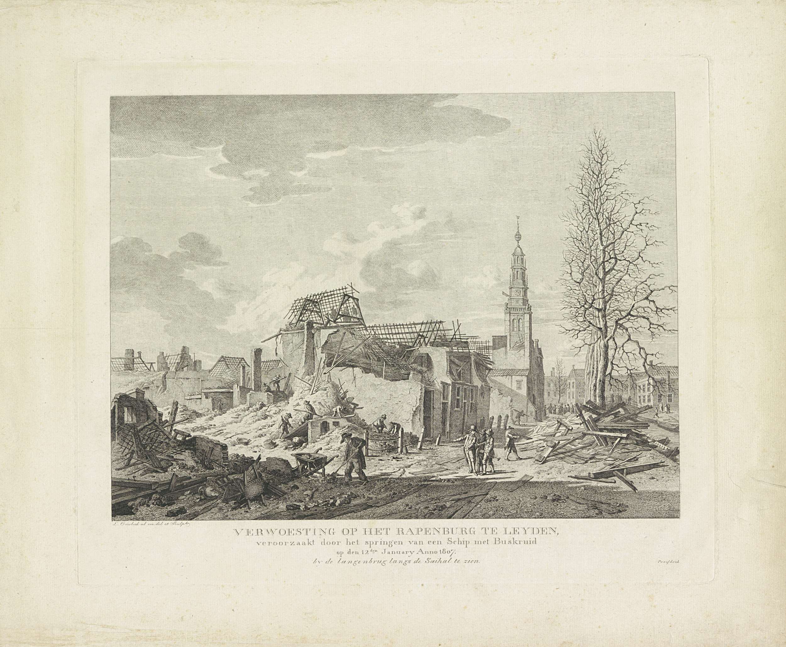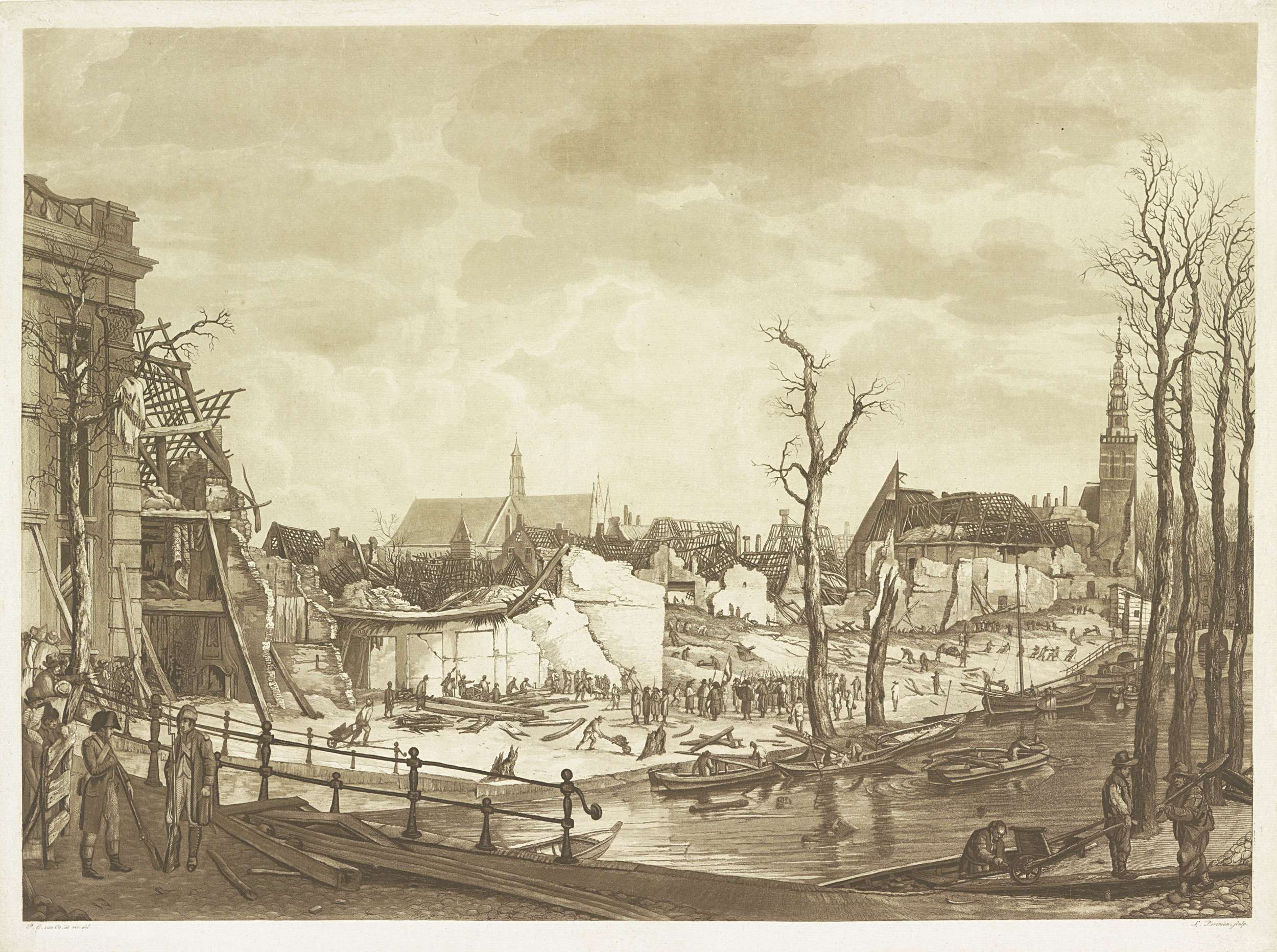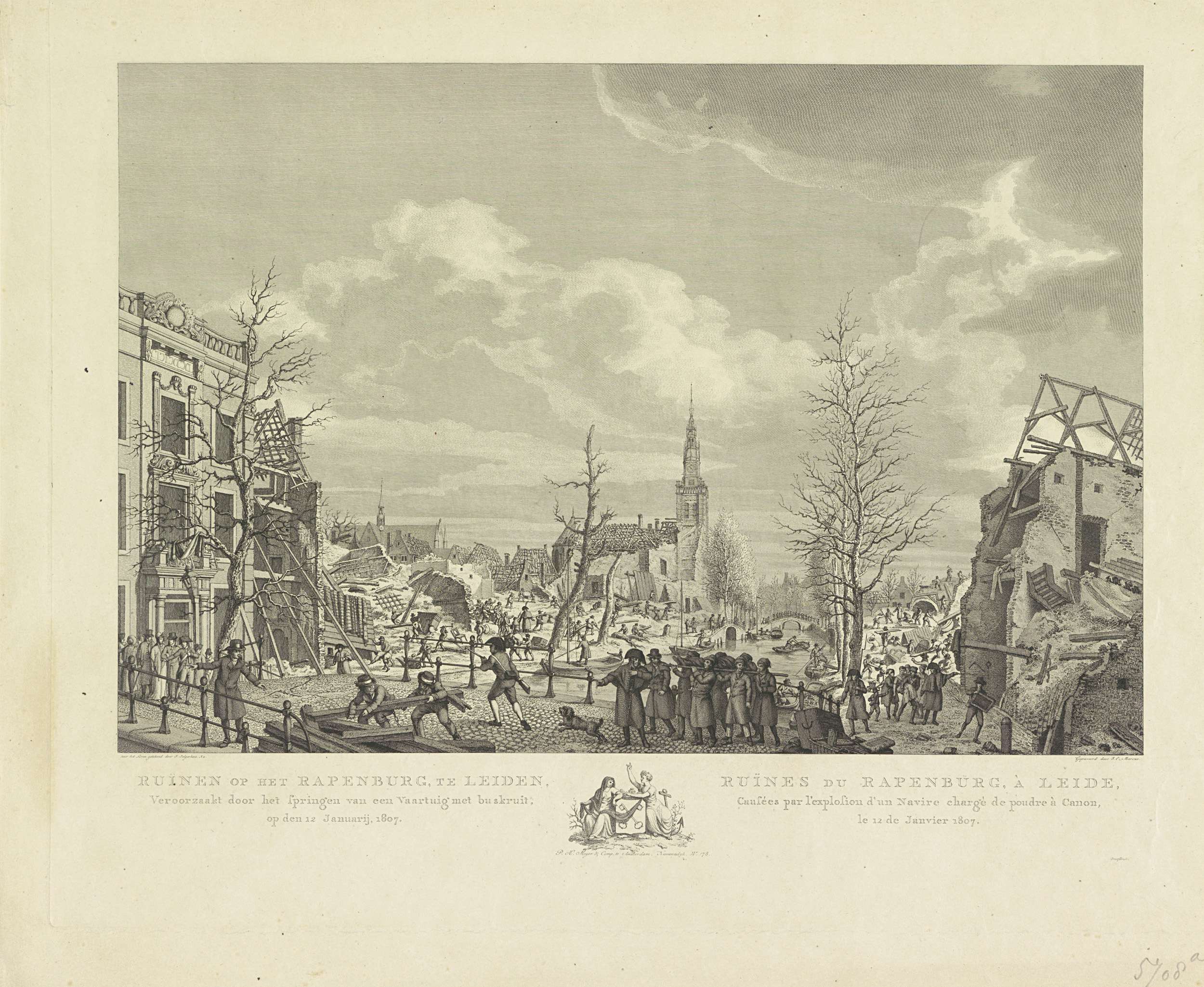 Ruïnes op het Rapenburg te Leiden na de ramp, 1807