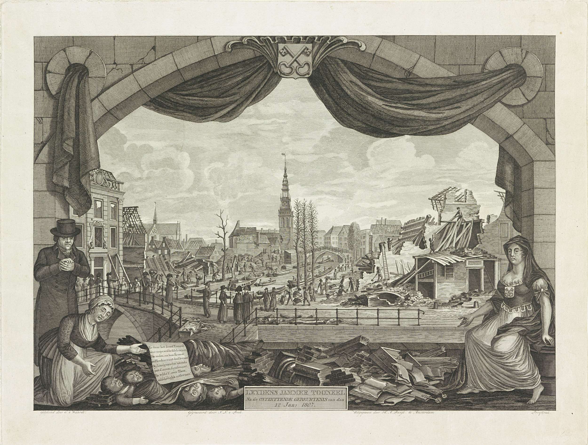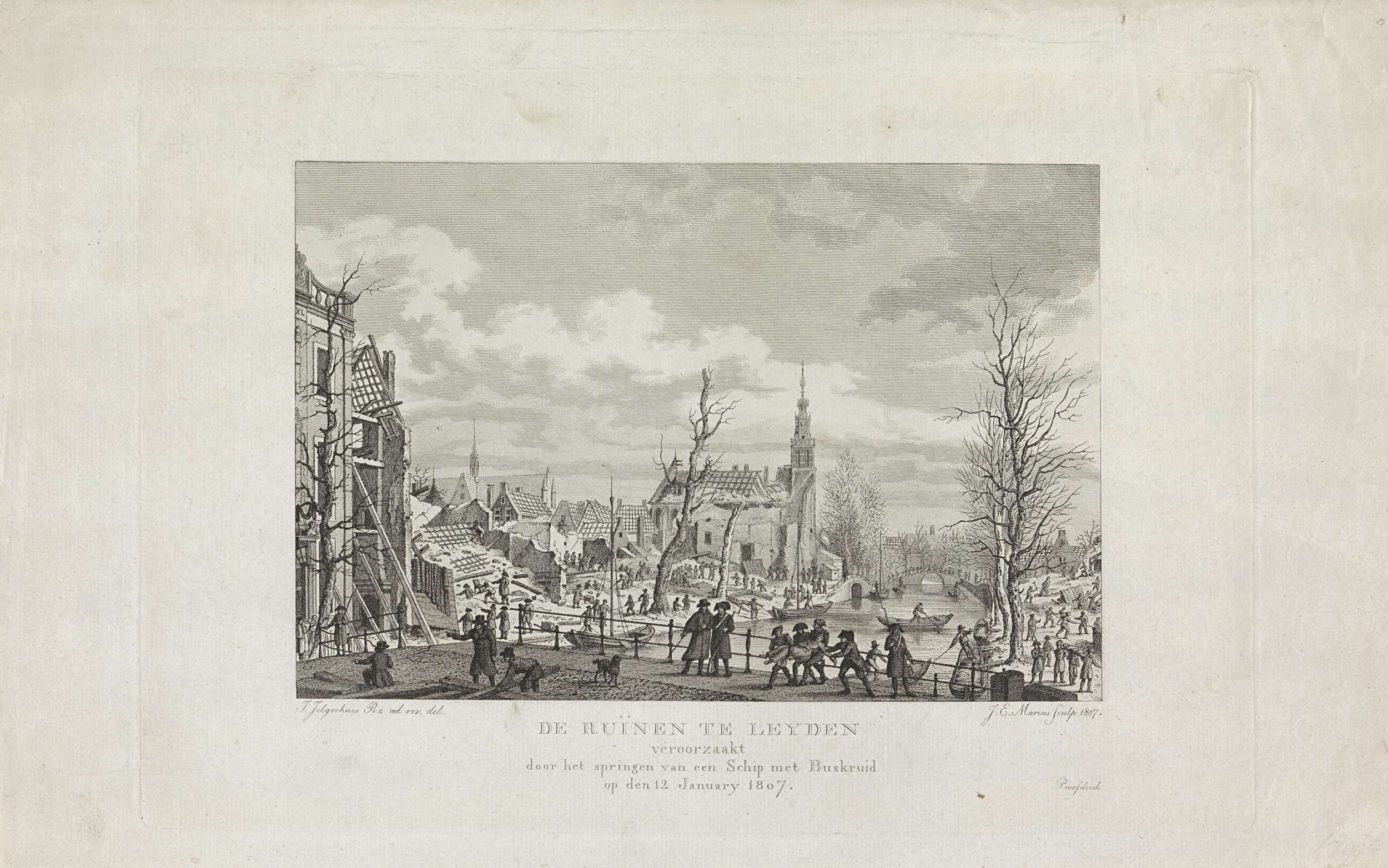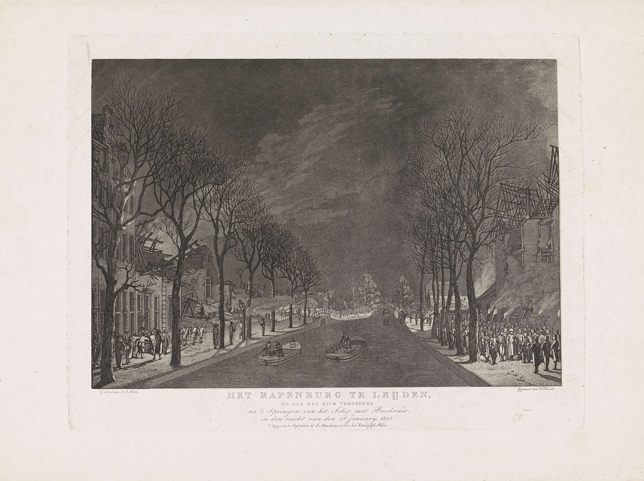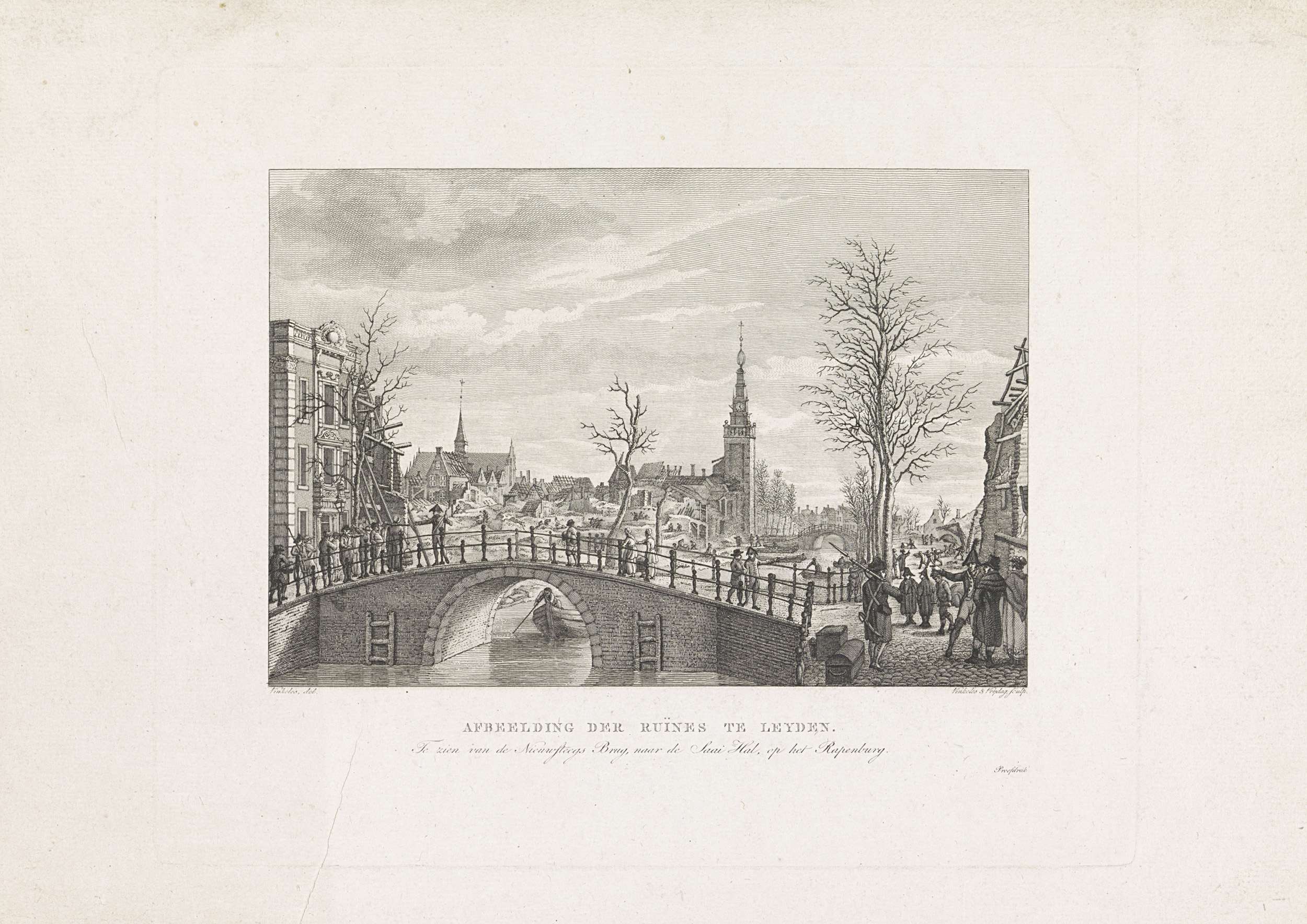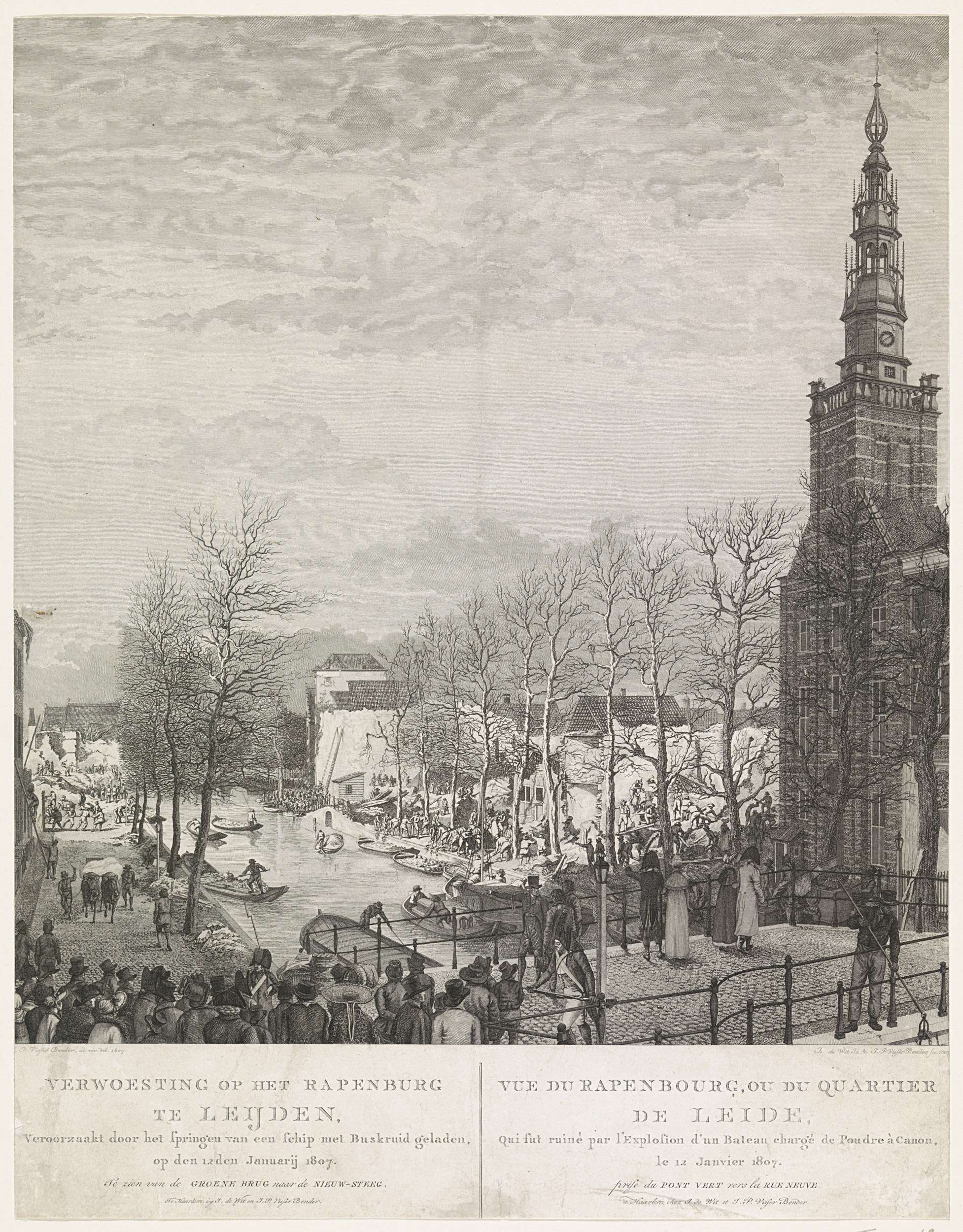 Ruïnes op het Rapenburg te Leiden na de ramp, 1807
