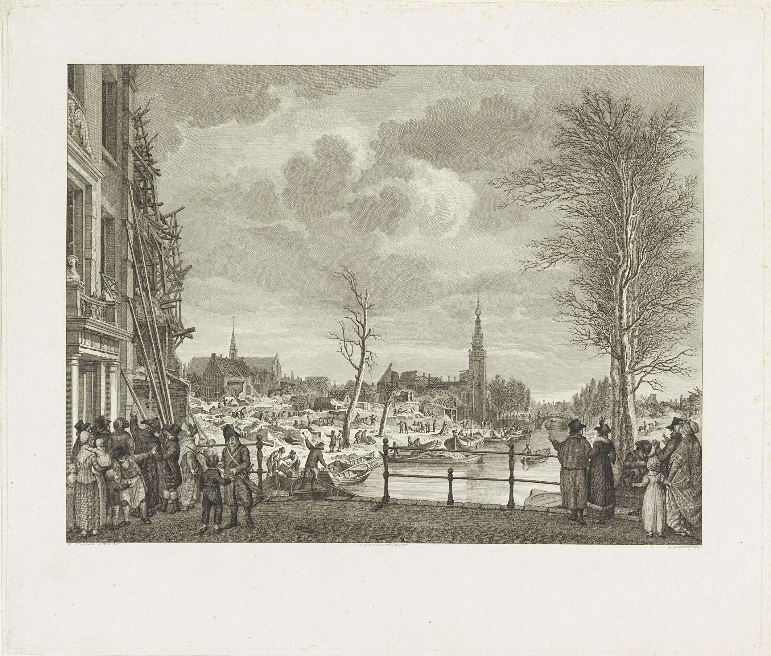 Herstelwerk op het Rapenburg na de ramp, 1807