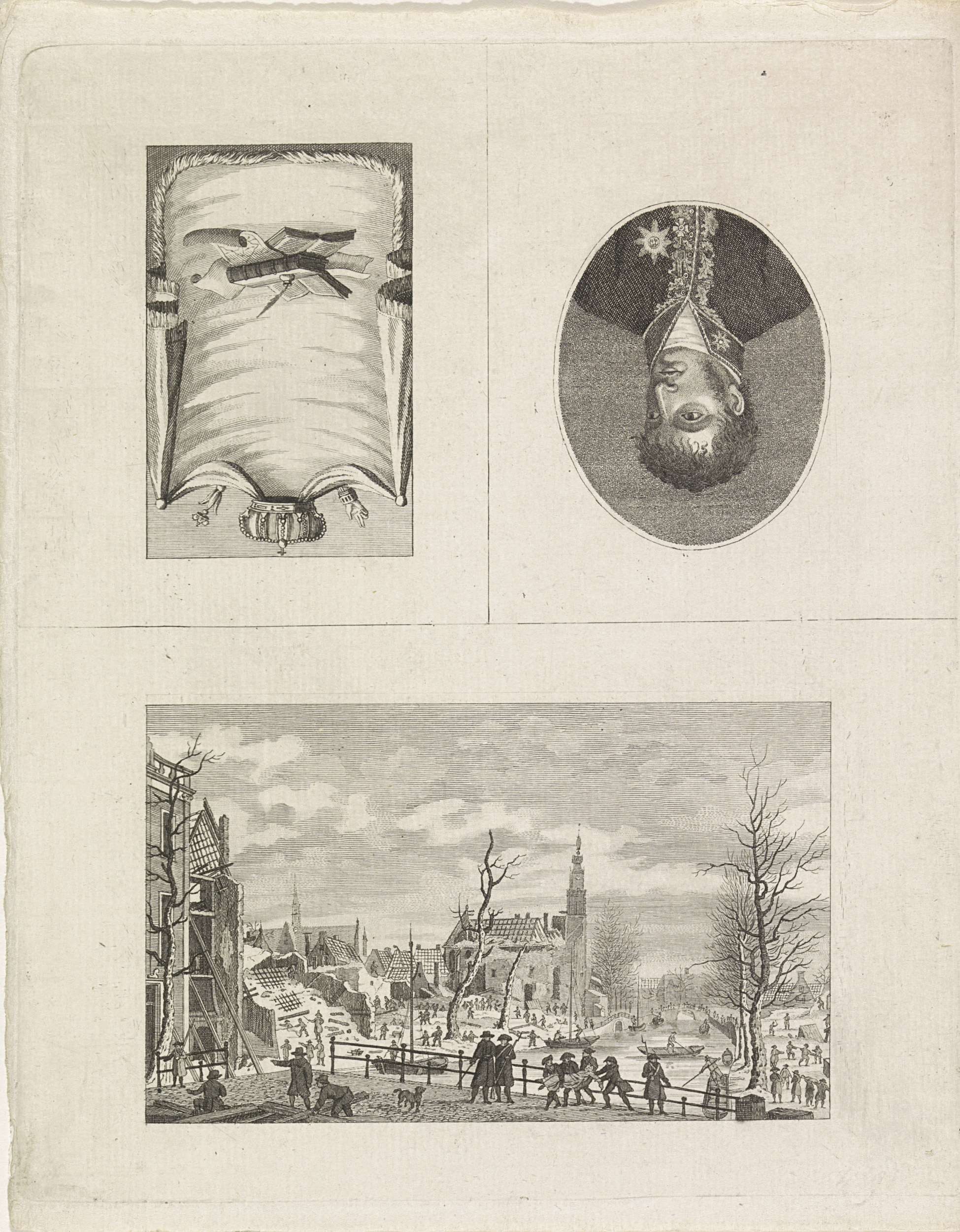 Drie voorstellingen: ruïnes op het Rapenburg te Leid...