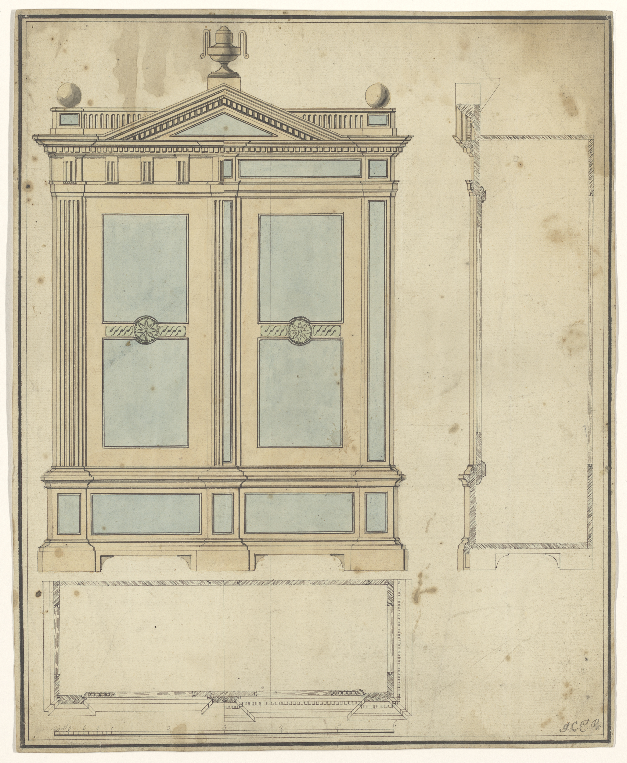 Inventaristekening van een zilveren lichtkroon