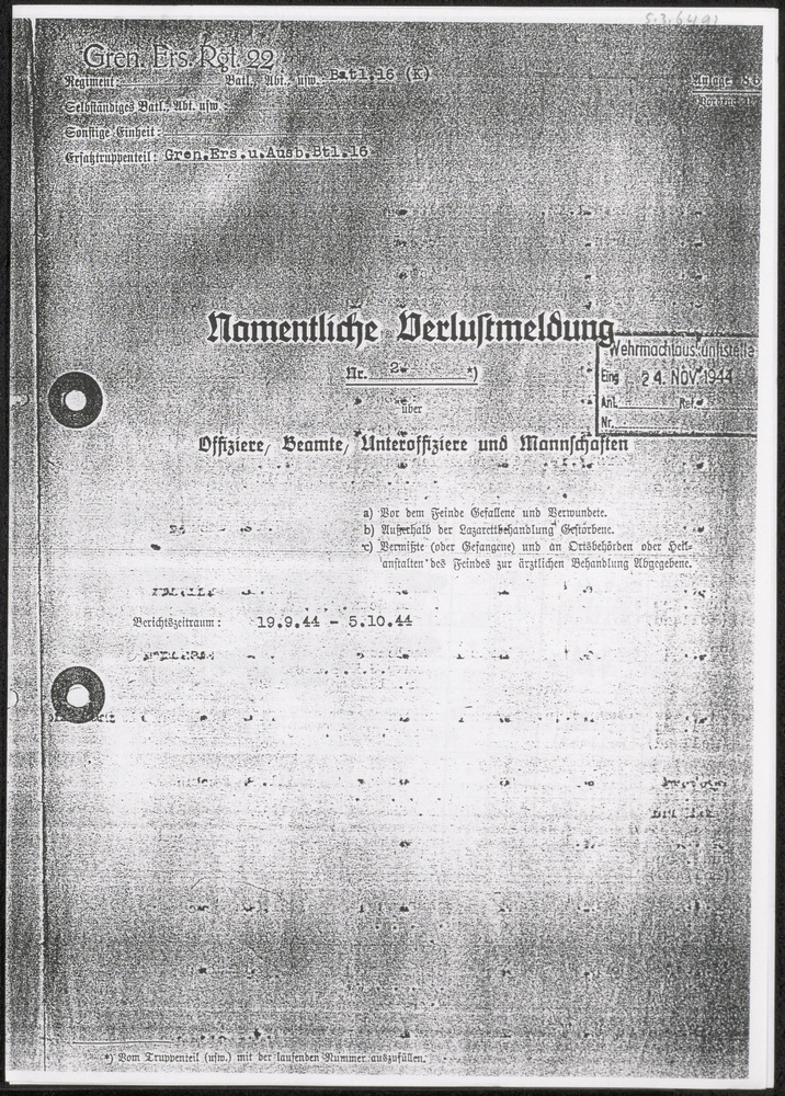 Namentliche Verlustmeldung, nr 2, 19.9.44 - 5.10.44