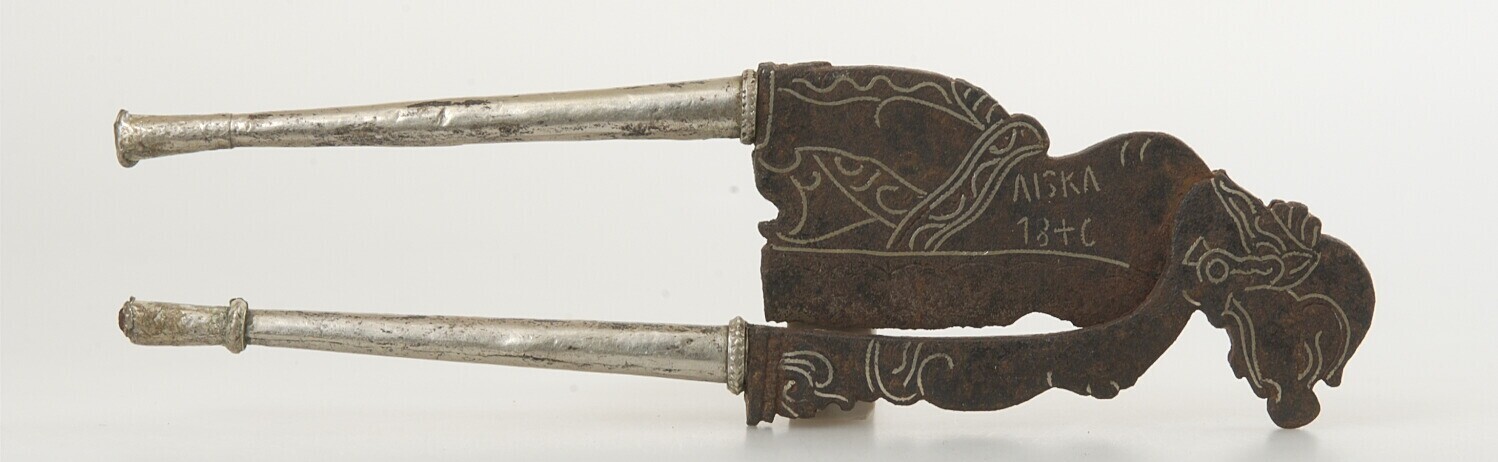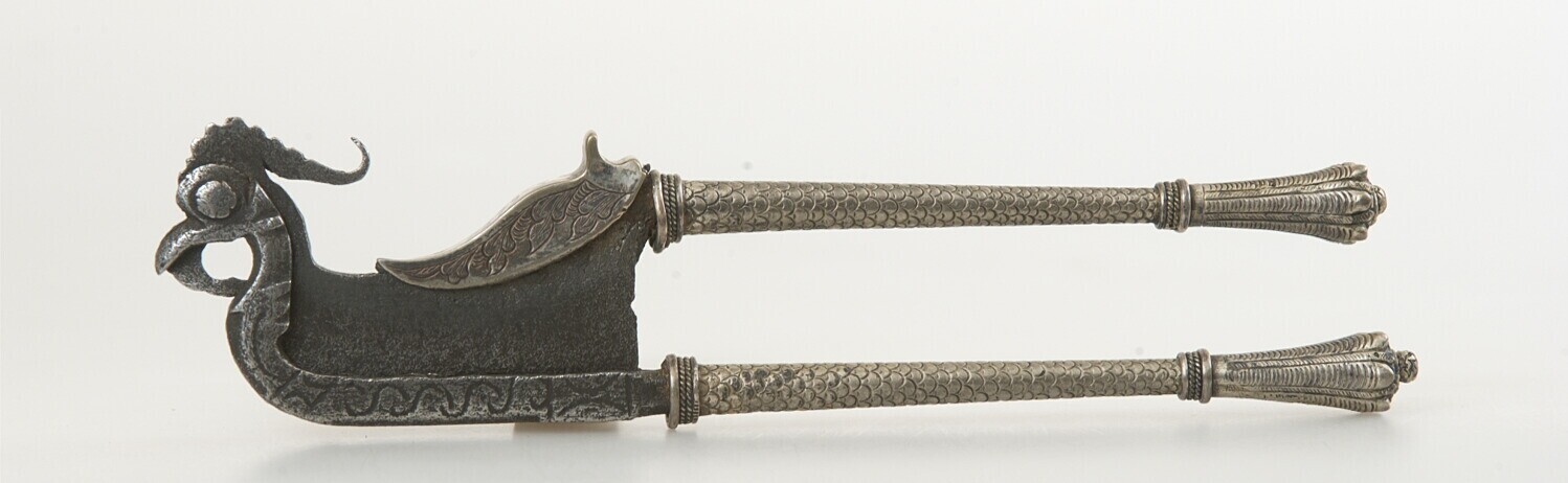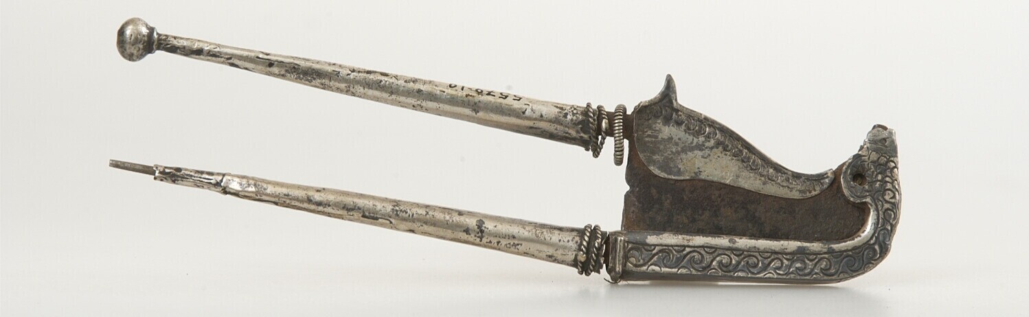Notenkraker van ijzer en zilver in de vorm van een g...