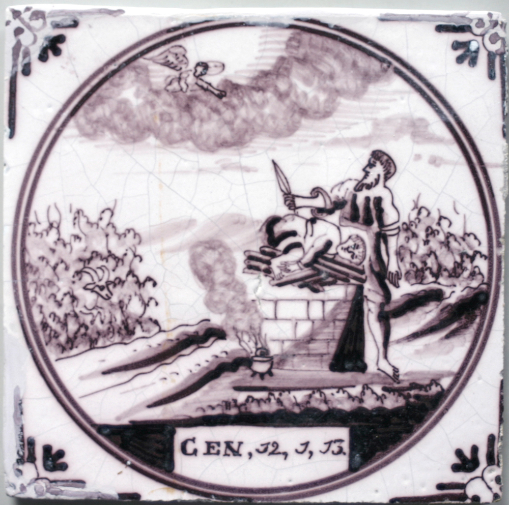 tegel van keramiek met tinglazuur, voorstellende: Ab...