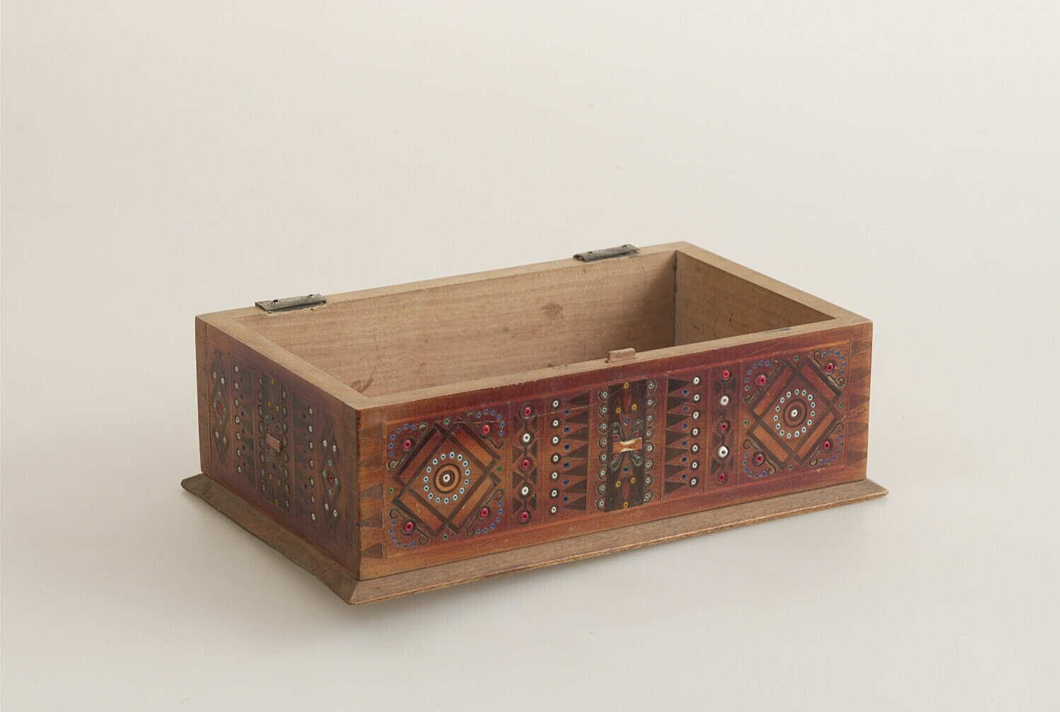 Houten doos, ingelegd met parelmoer en glazen kralen