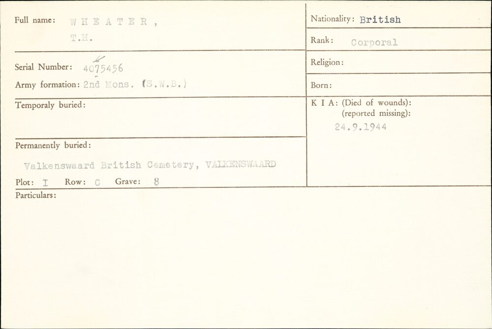 Oorlogsgraven comité kaarten Valkenswaard