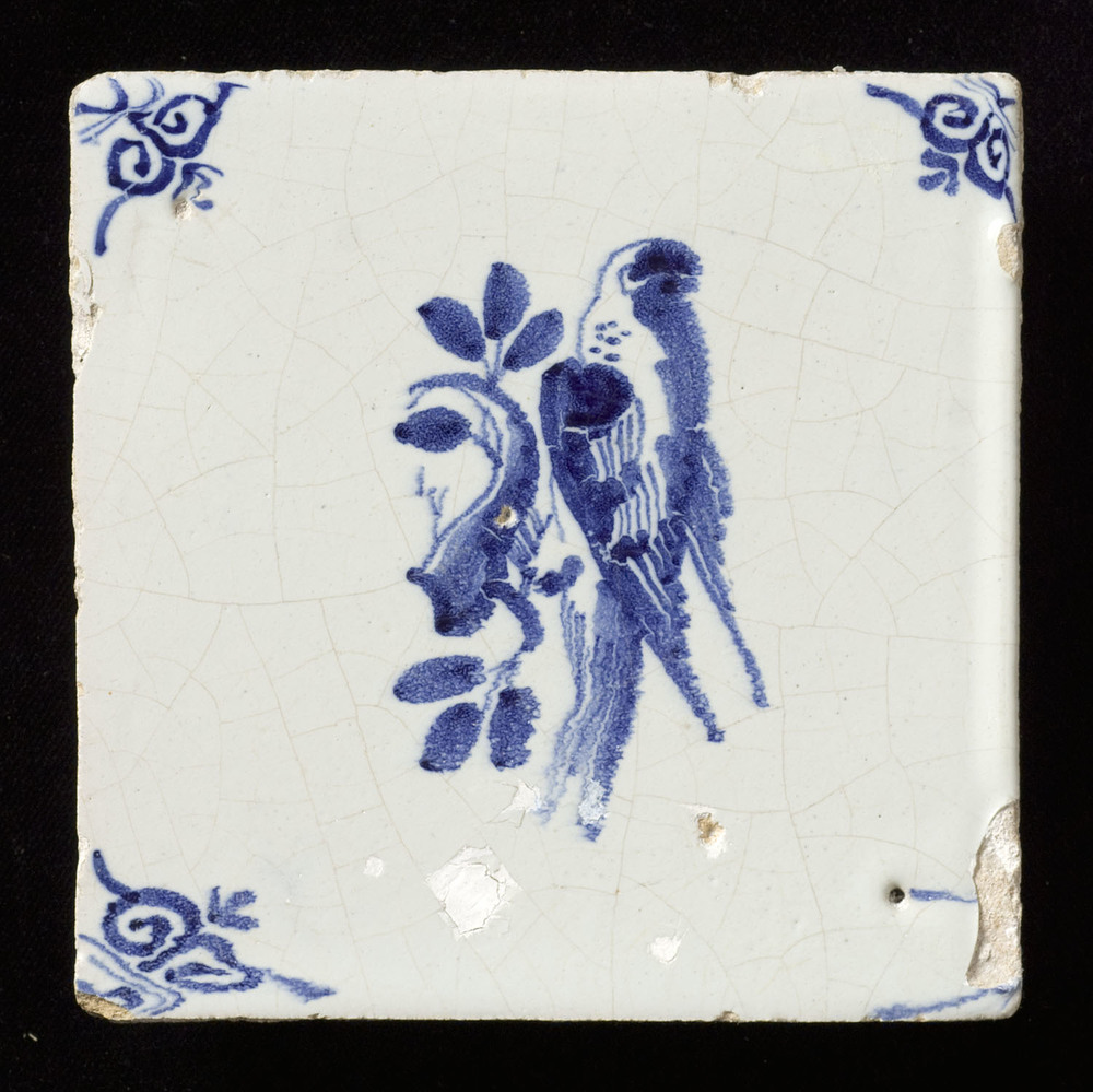 Tegel in tinglazuur, voorstellende vogel gemaakt in ...