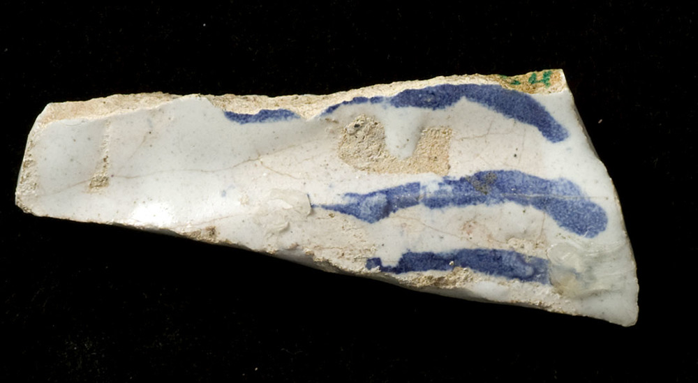 Scherf van keramiek, tinglazuur, gemaakt in Nederlan...