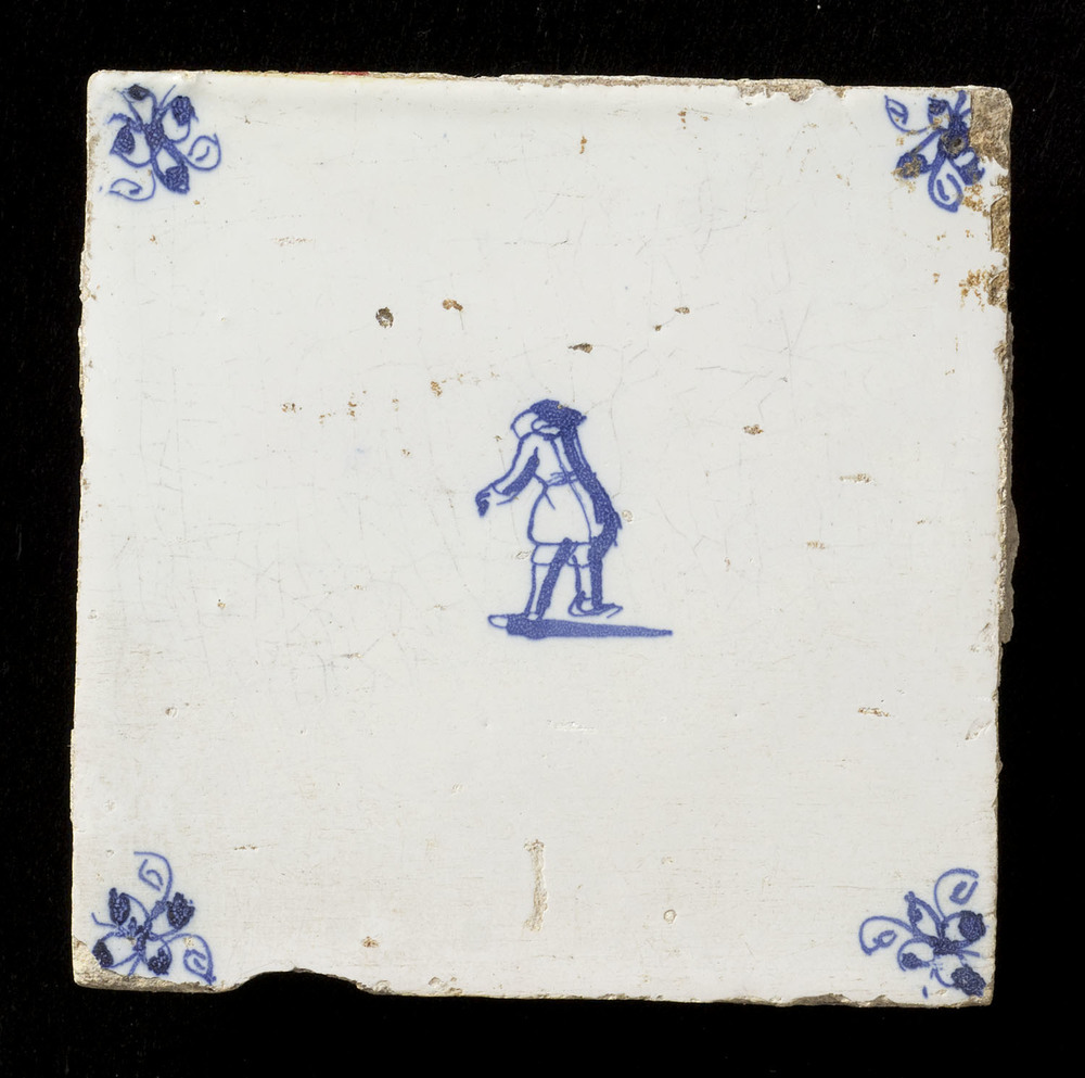 tegel van aardewerk met tinglazuur, voorstellende: h...