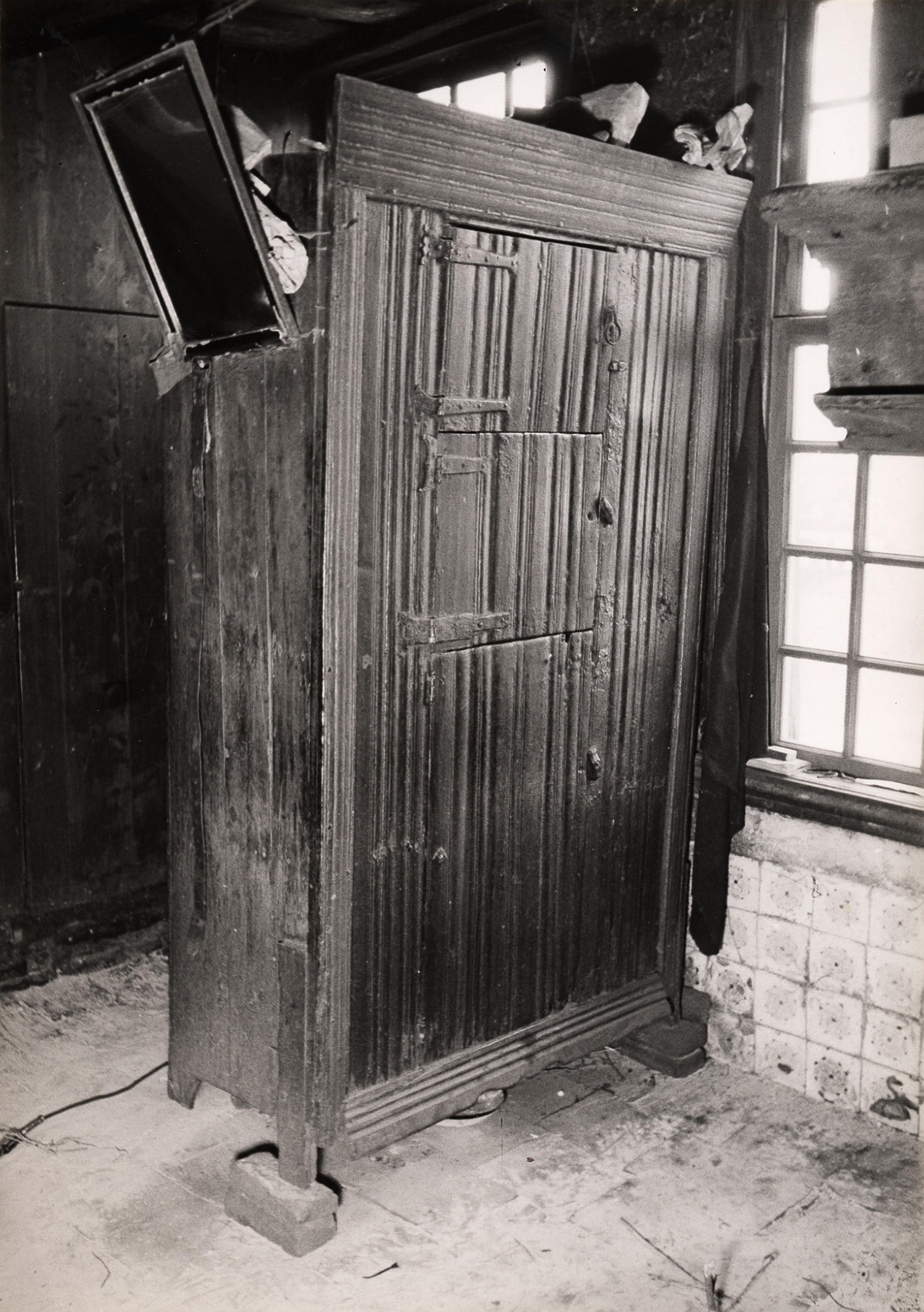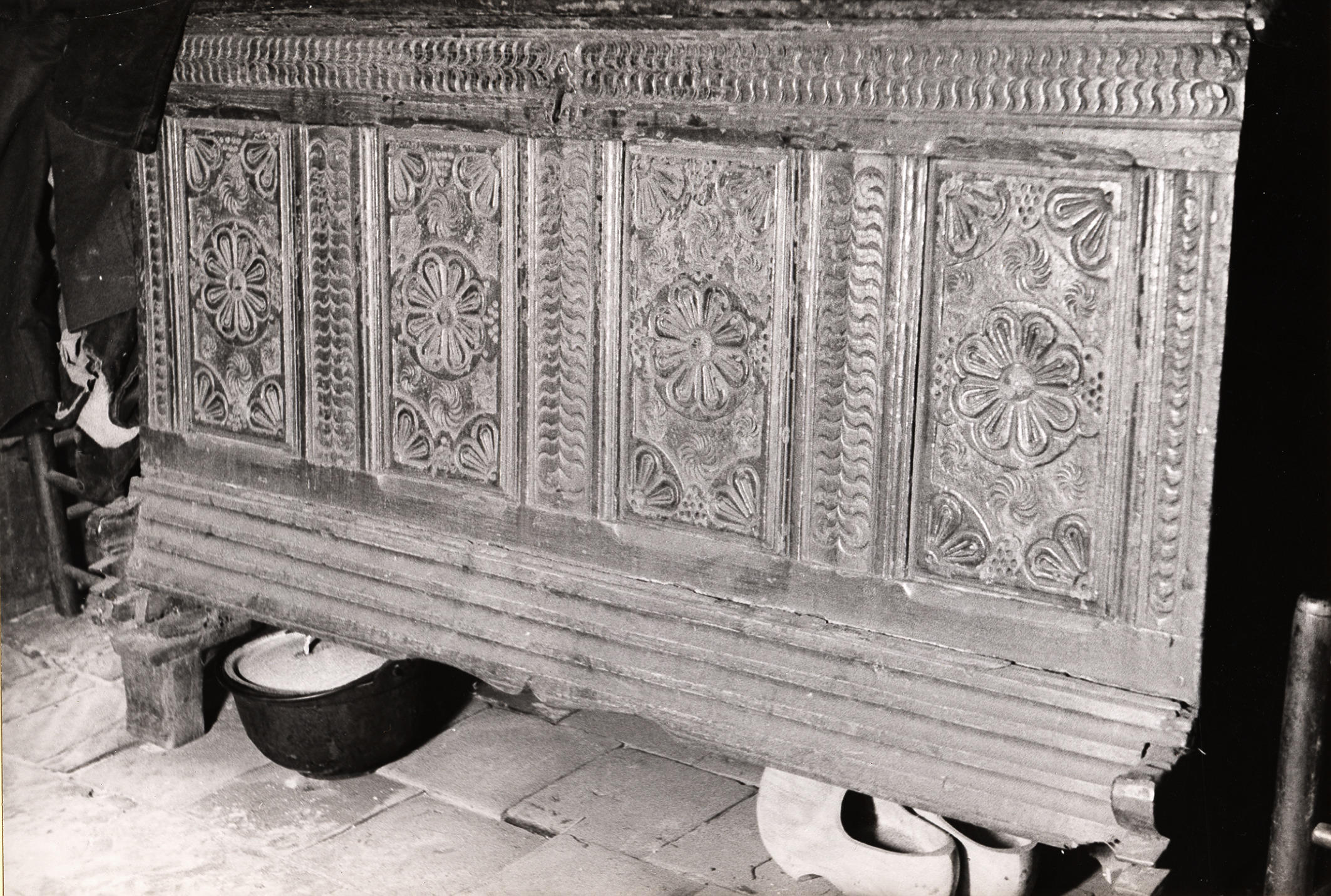 Houten kist met snijwerk, Rouveen, 1944 (zwart-wit f...