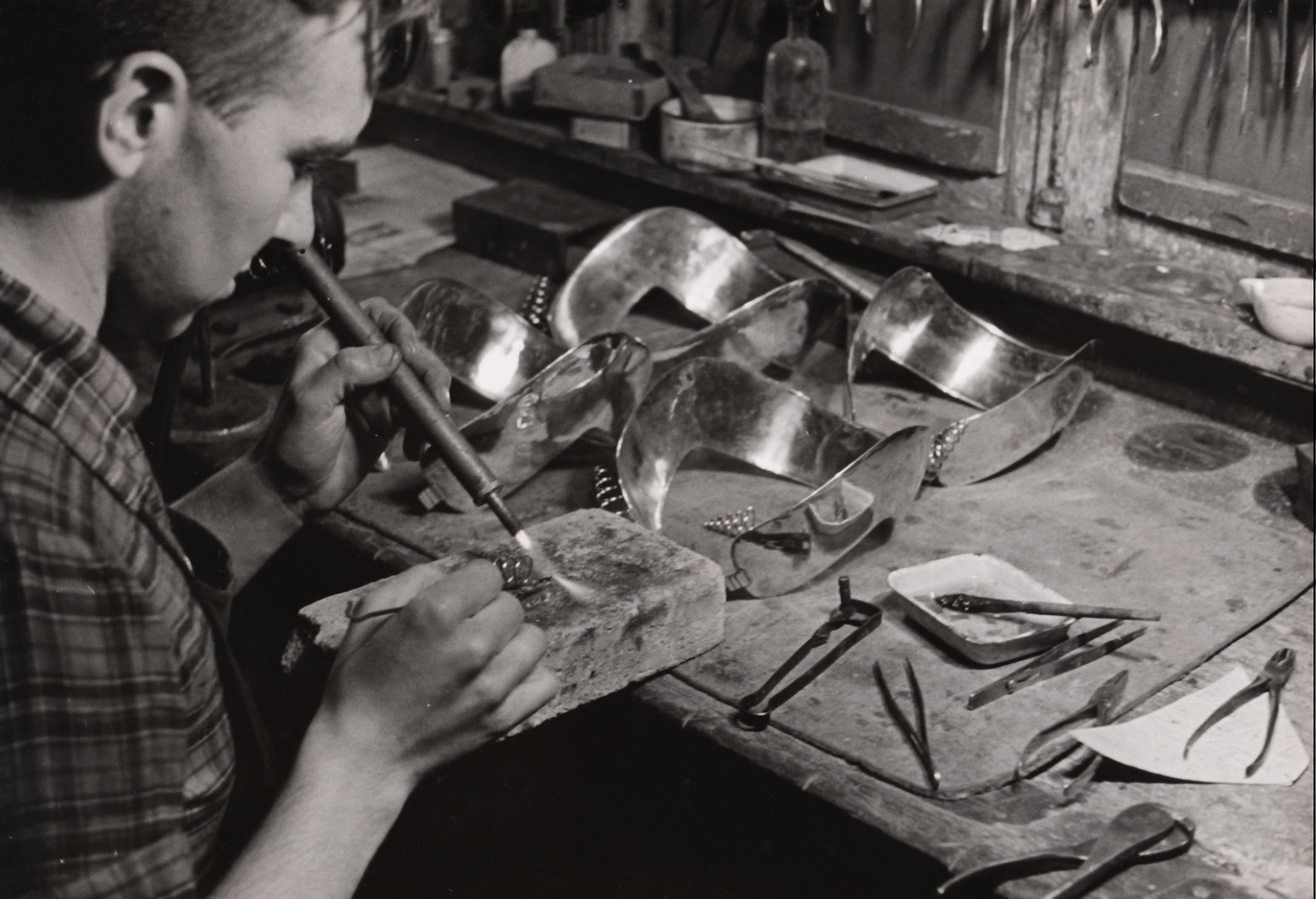 Reparatie van oorijzers, Staphorst, 1944 (zwart-wit ...