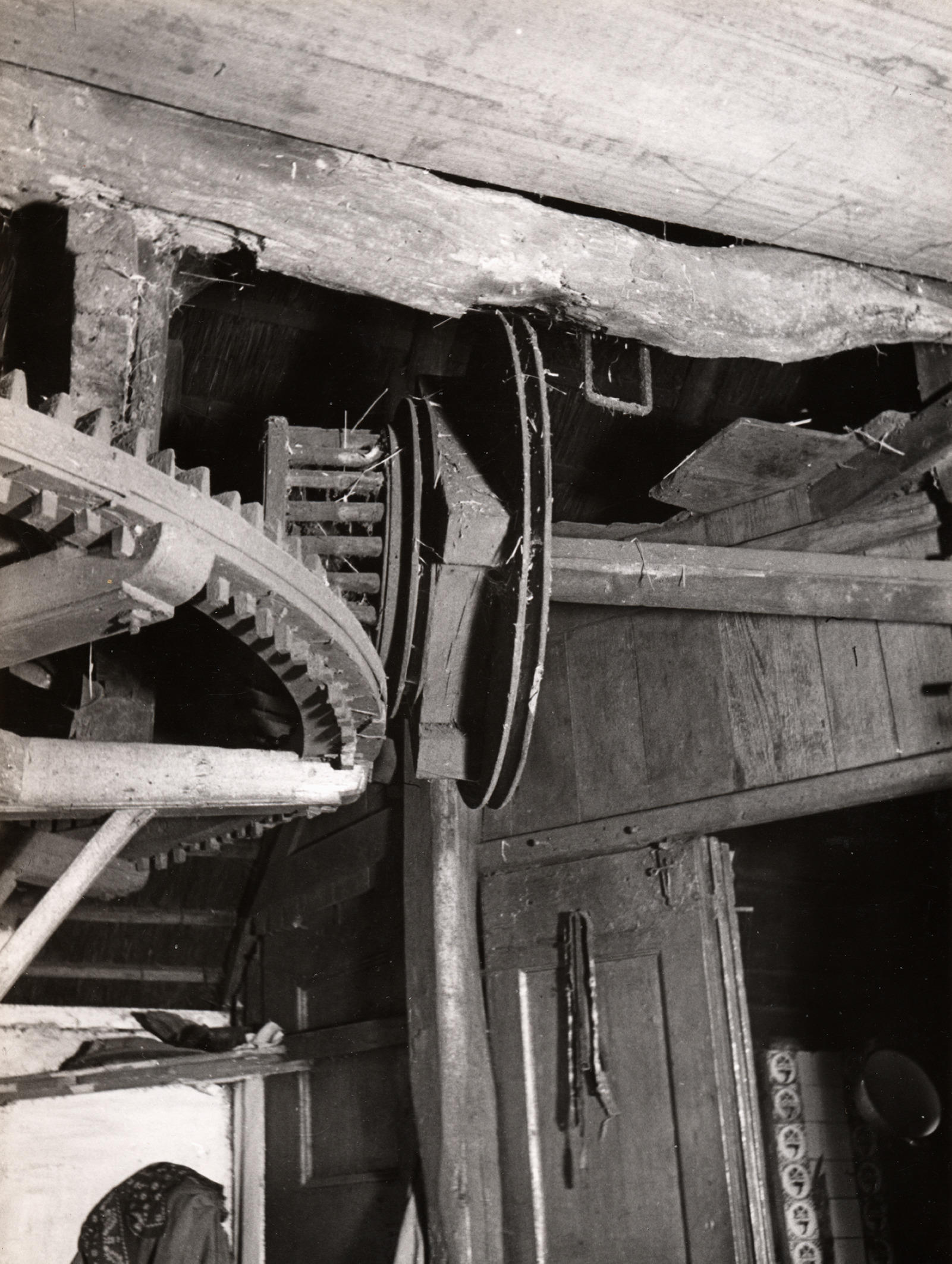 Detail van een karnmolen, Staphorst, 1944 (zwart-wit...