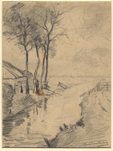 Tekening van de Noorderdwarsvaart te Drachten