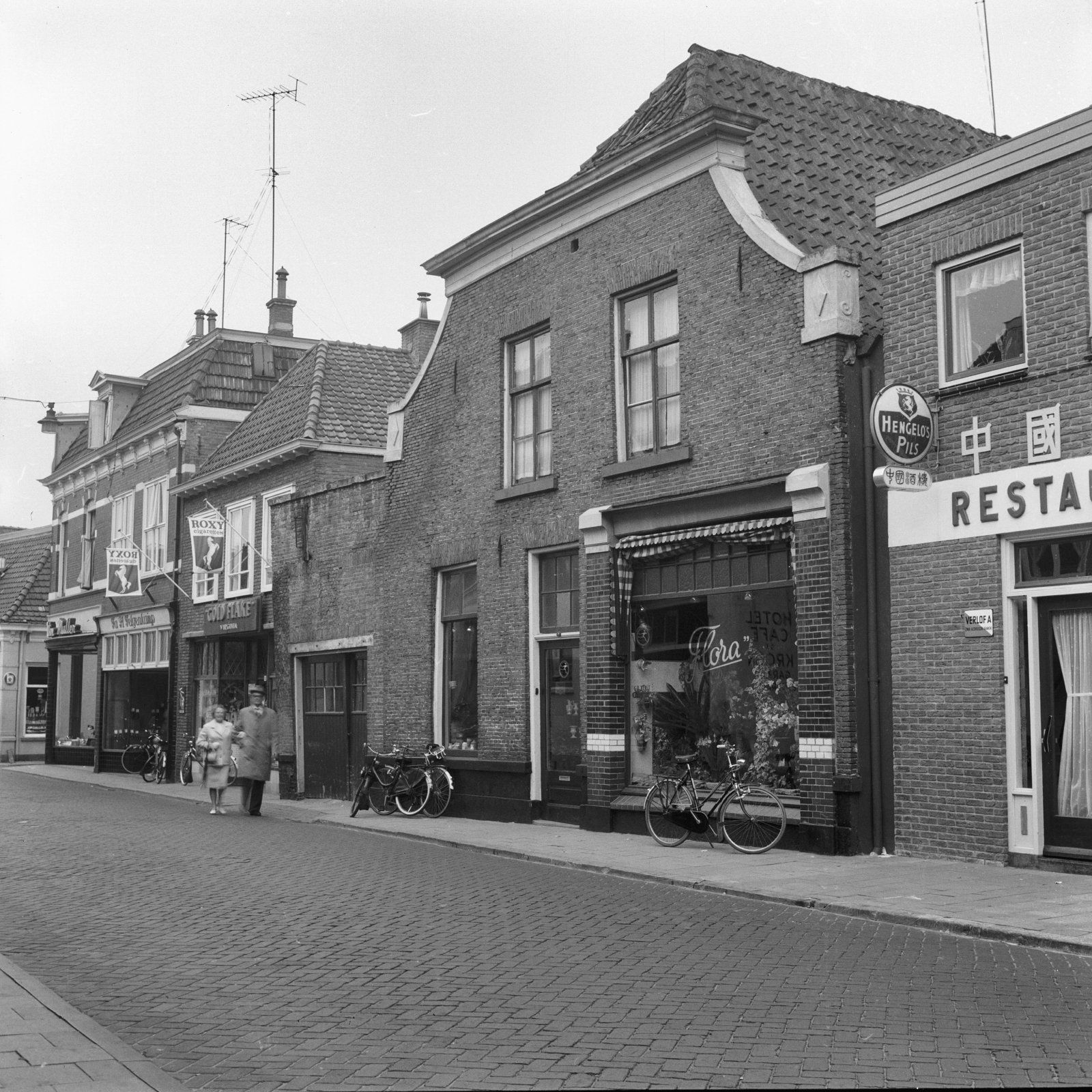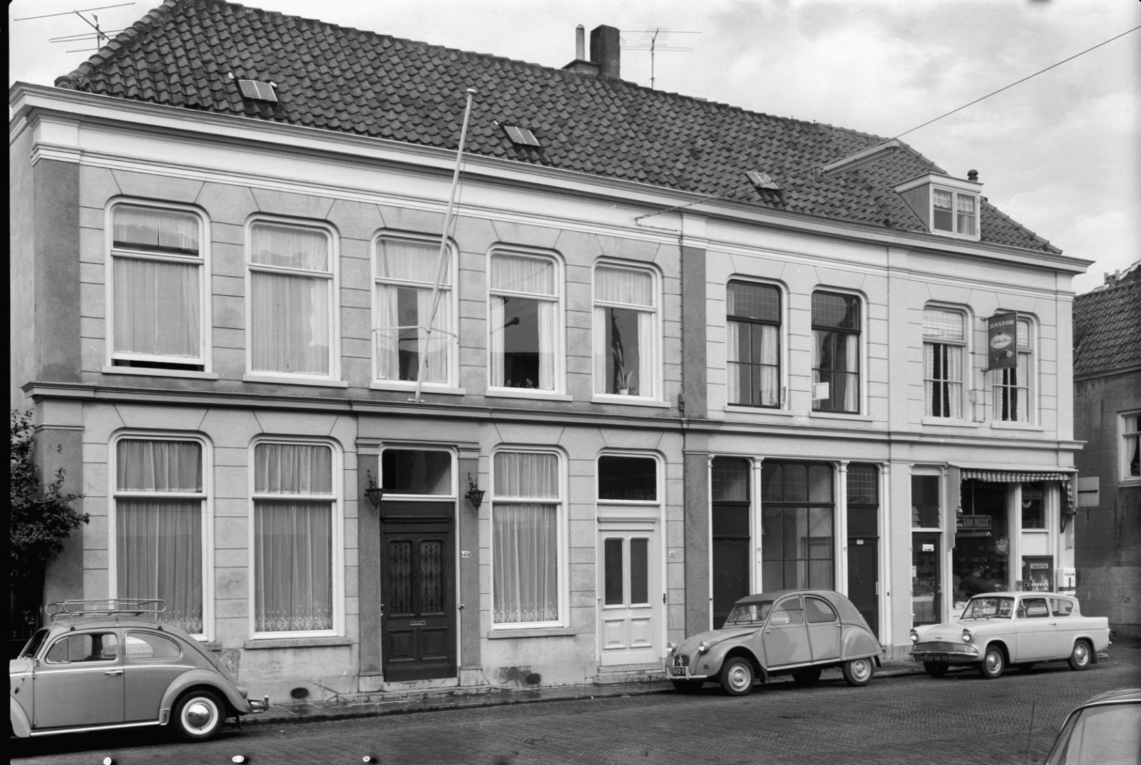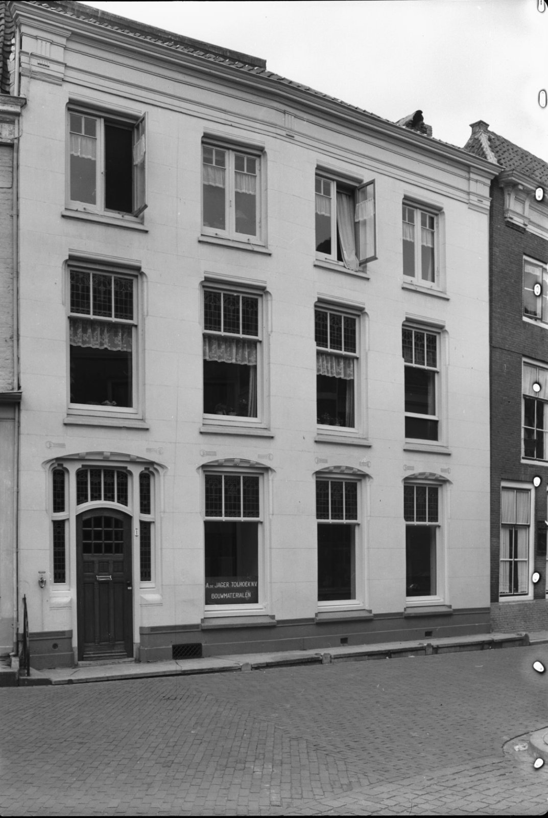 Groep huizen - links de gevel van de voormalige Acht...