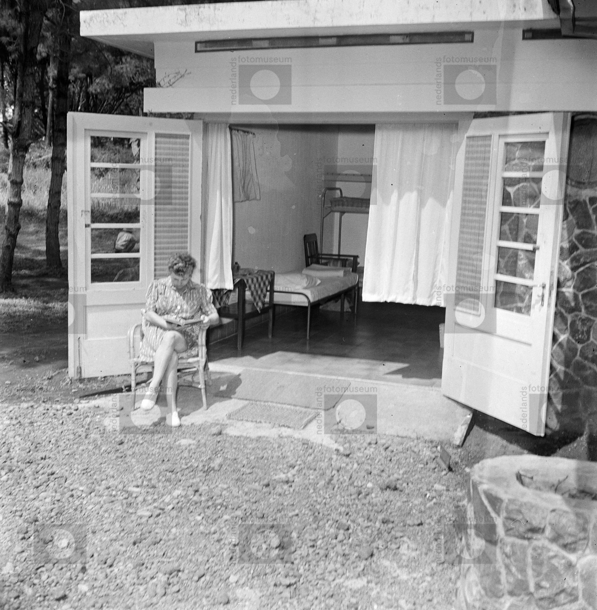 Een Nederlandse vrouw zit buiten voor een slaapkamer...