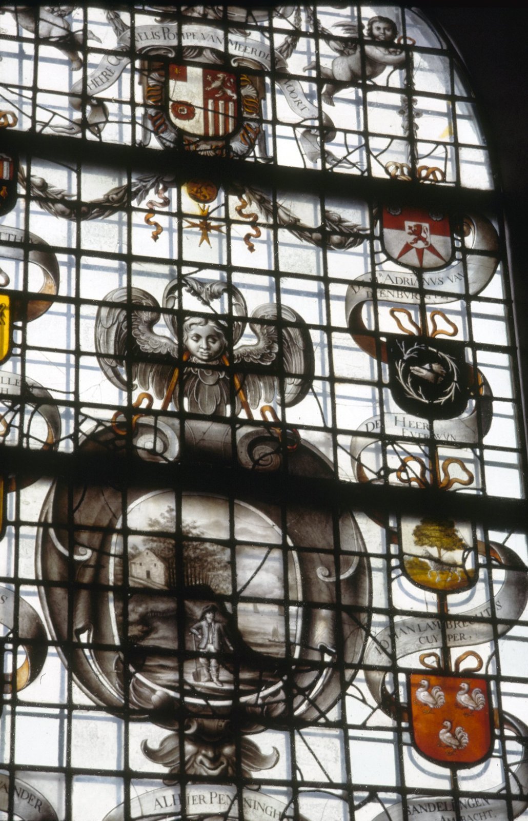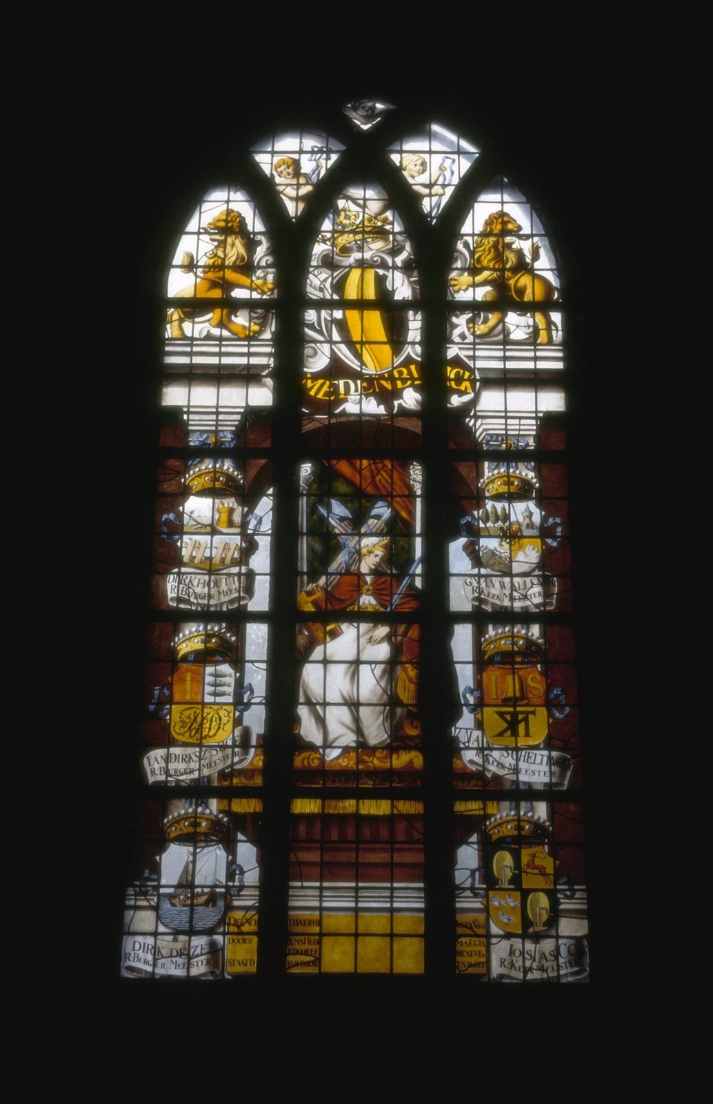 Interieur, gebrandscilderd glas: Medenblik