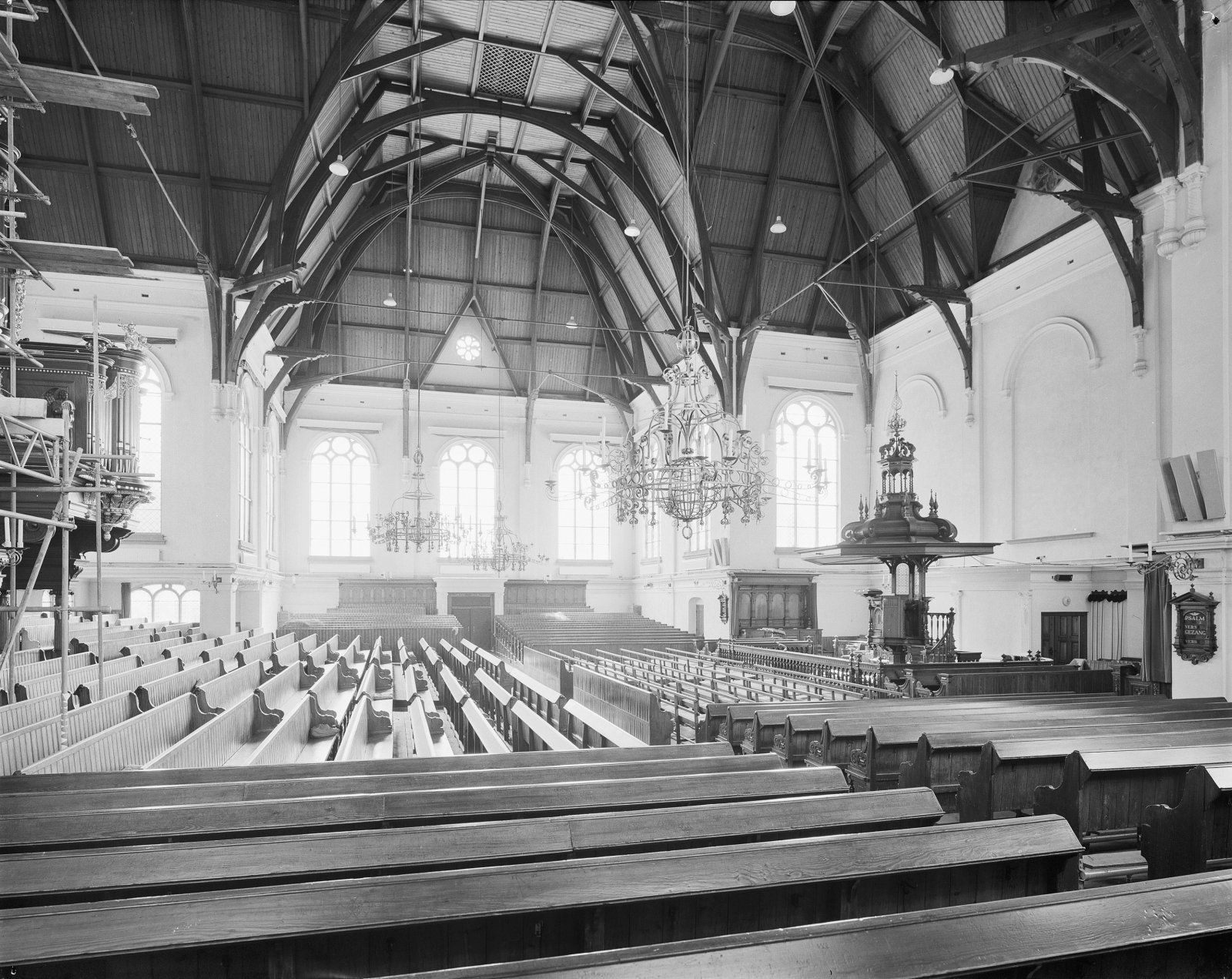 Interieur, kerk in de steigers tijdens restauratie: ...
