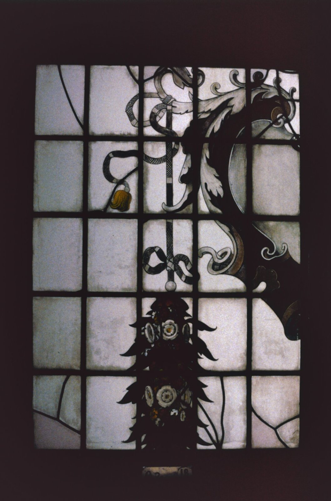 Interieur, gebrandschilderd glas, aan de buitenzijde...
