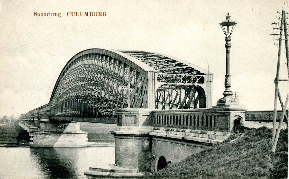 Ansichtkaart, voorstellende de spoorbrug te Culembor...