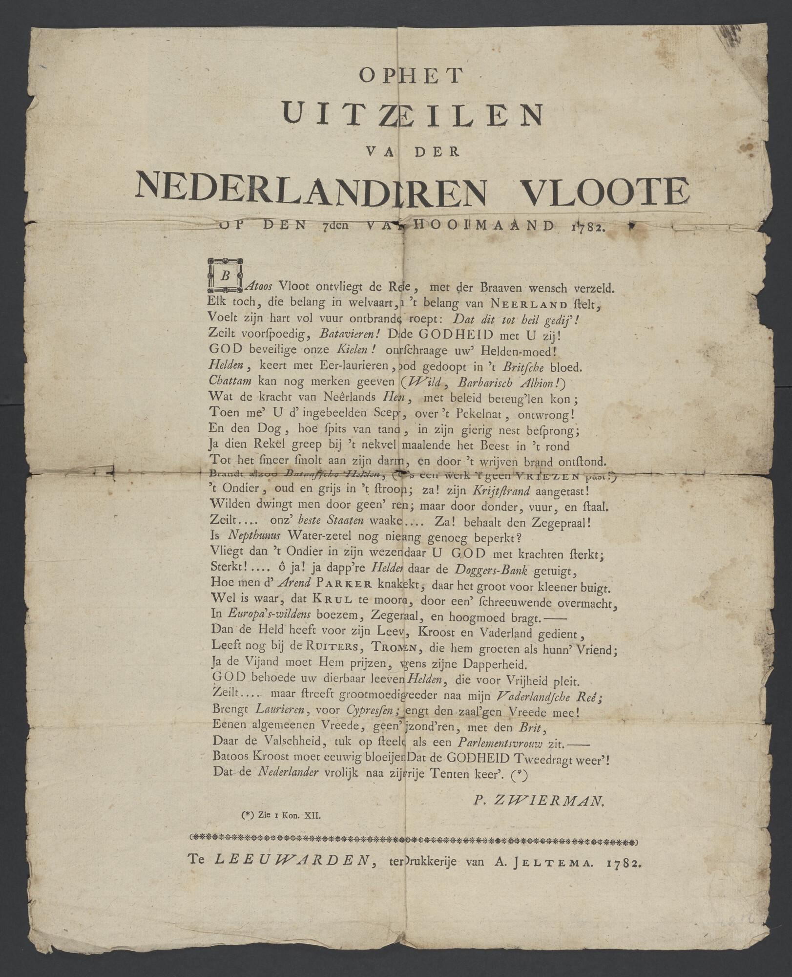 Gelegenheidsgedicht op de droogmaking van het Haarle...