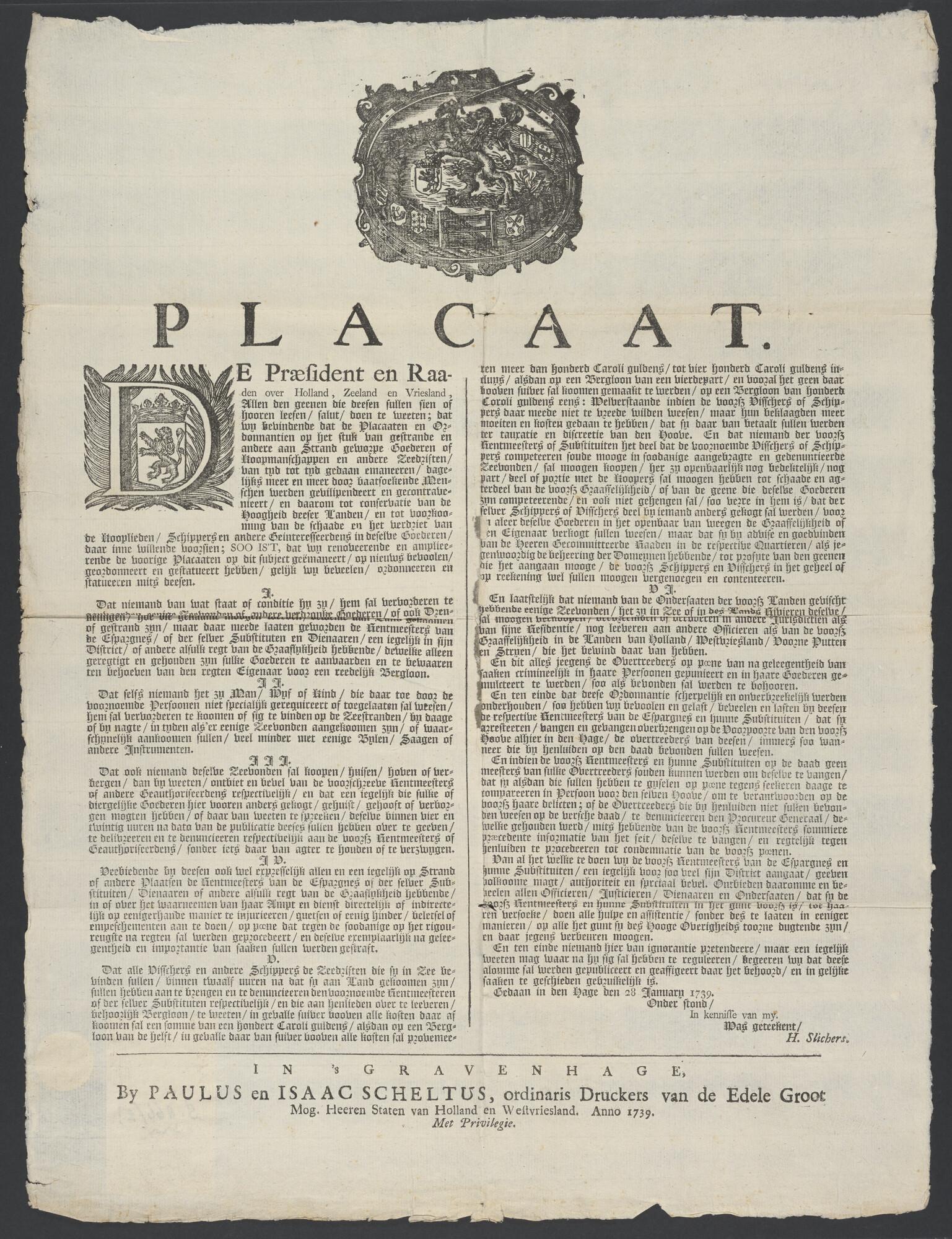 Plakkaat betreffende de strandvonderij in Holland, Z...