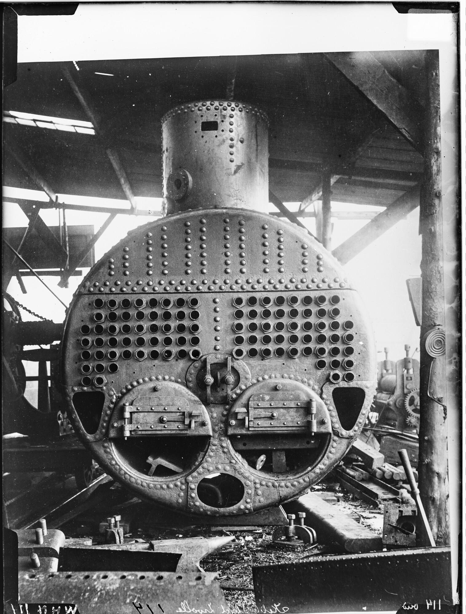 Glasnegatief van een bootketel (no.7) voor de stooms...