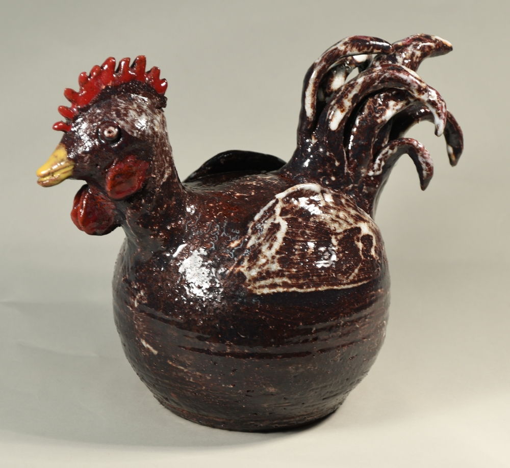 Beeldje in de vorm van een kip van keramiek donkerbr...