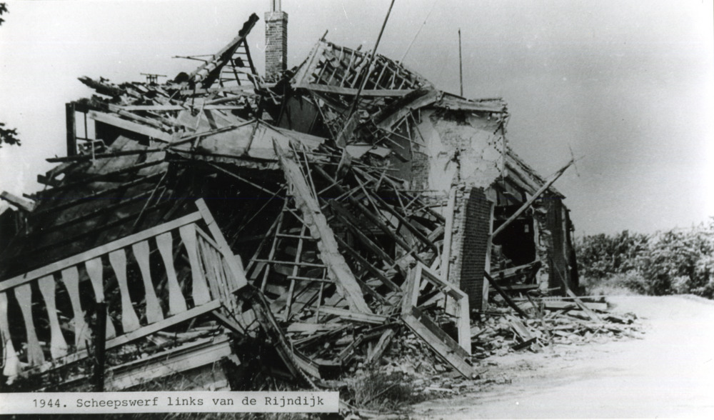 Zwart-wit foto van de ravage bij scheepswerf aan de ...
