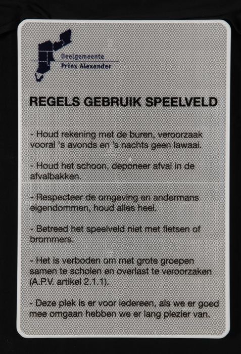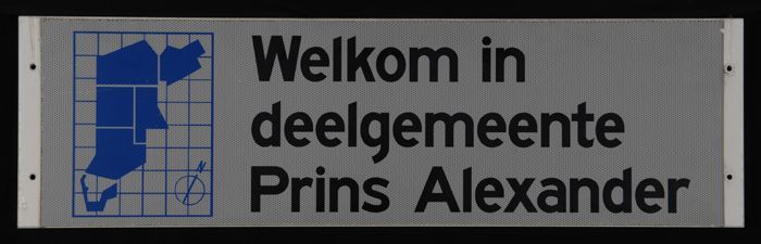 Langwerpig bord: "Welkom in deelgemeente Prins Alexa...