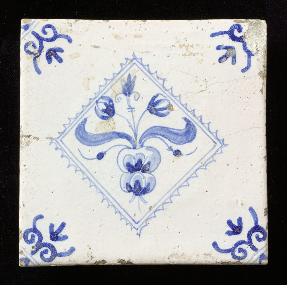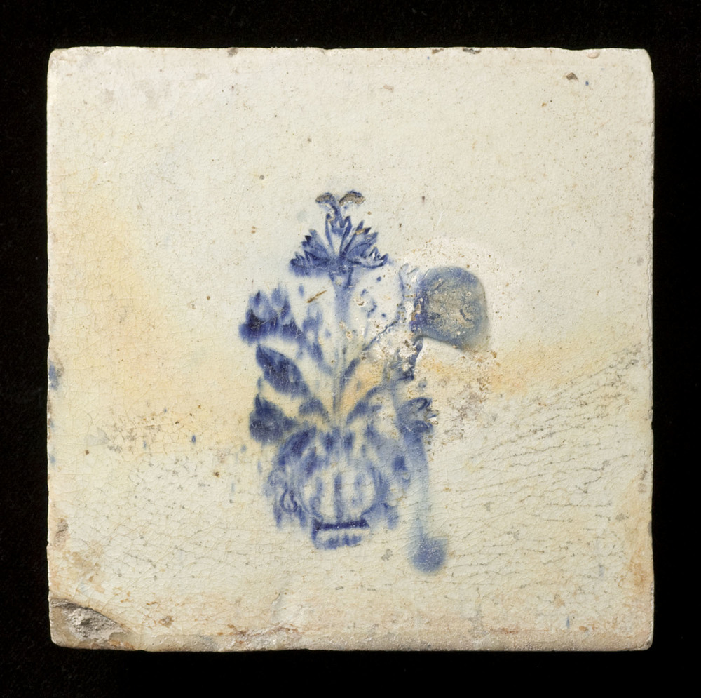 Tegel van keramiek, tinglazuur, voorstellende een bl...