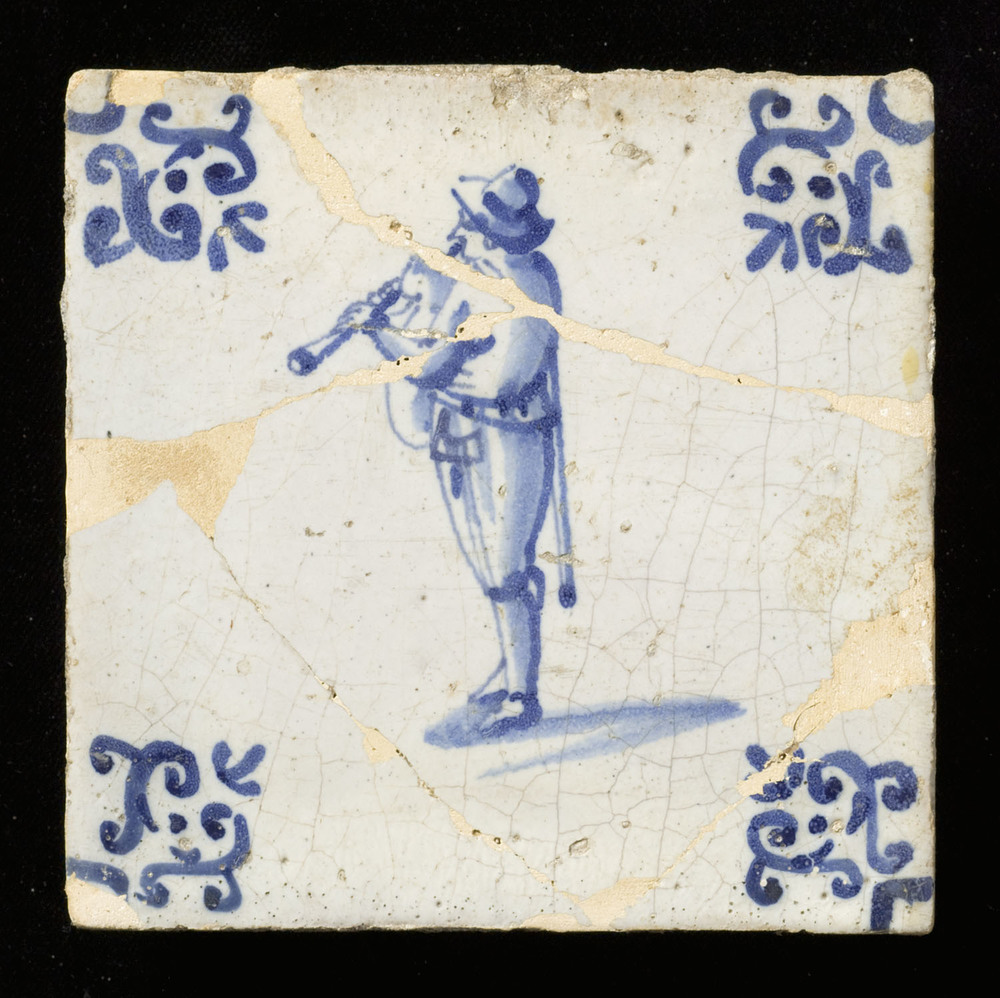 Tegel van keramiek met tinglazuur, voorstellende: Ja...