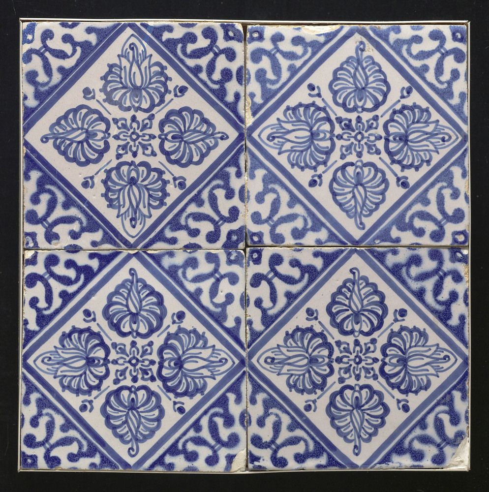 Tegel van keramiek, onderglazuur, voorstellende orna...