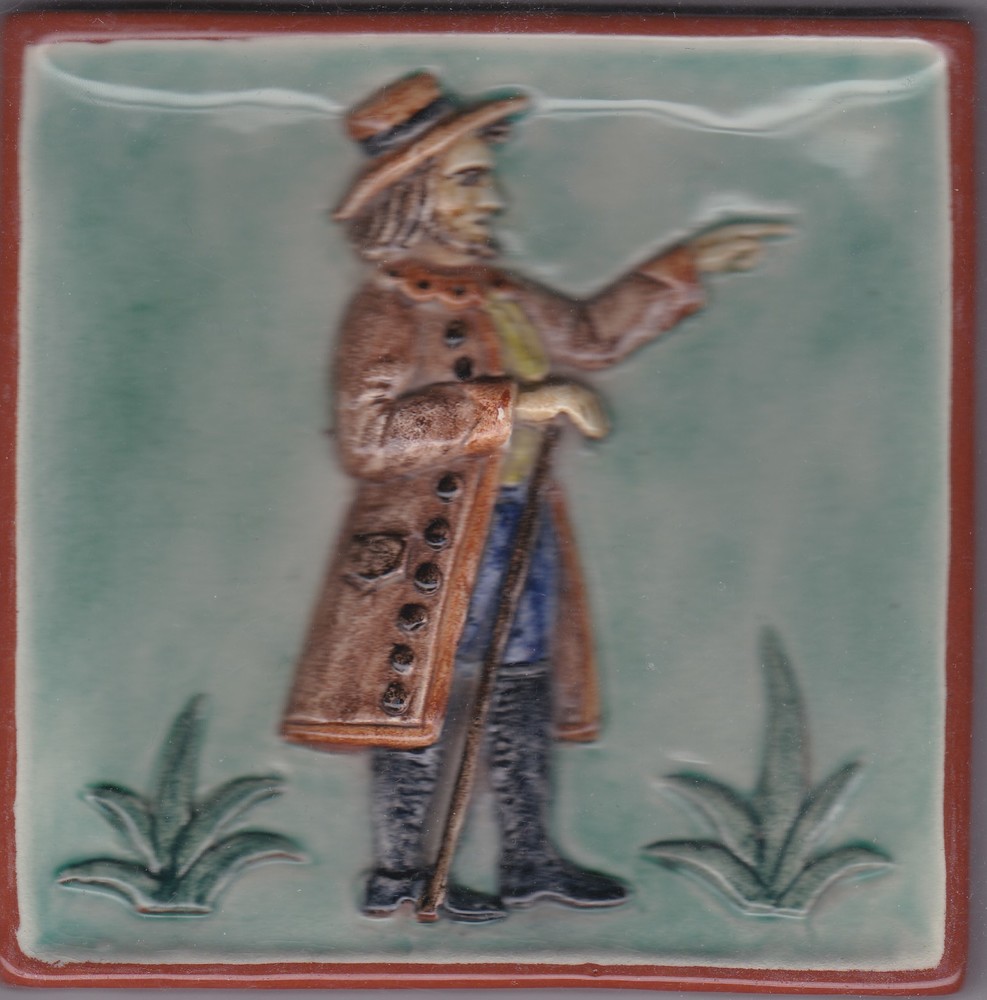 Tegel in reliëf, met voorstelling: staande man met w...