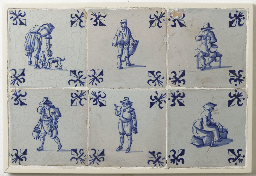Tegelveld van keramiek, tinglazuur, voorstellende, v...