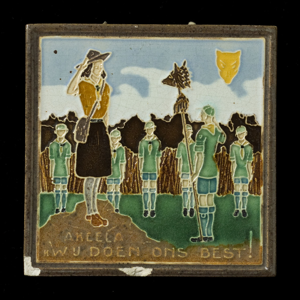 Tegelplaat in cloisonné-techniek, met voorstelling: ...