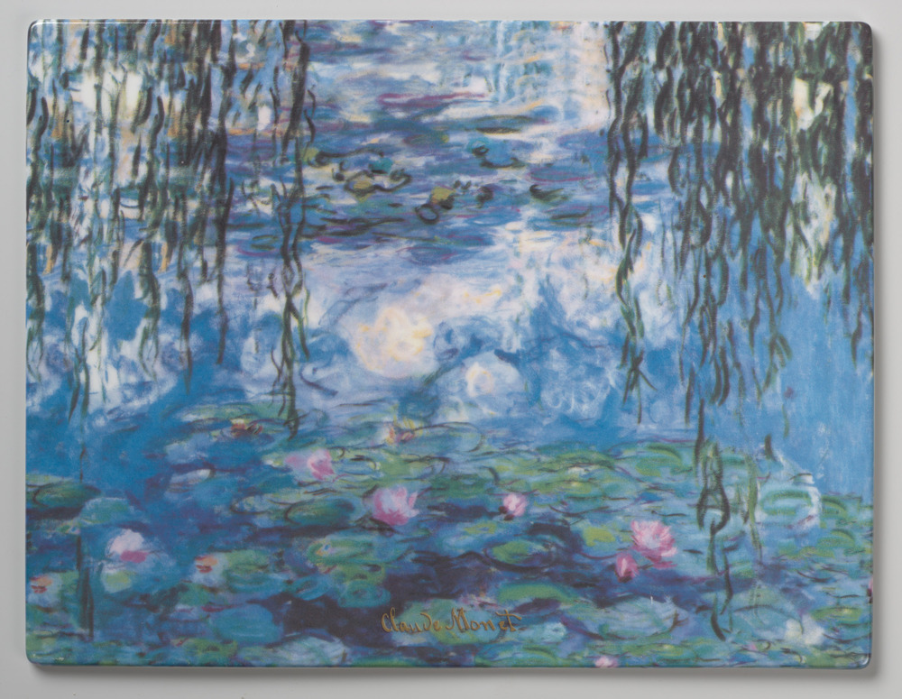 Tegel in druktechniek, met voorstelling: meer met wa...
