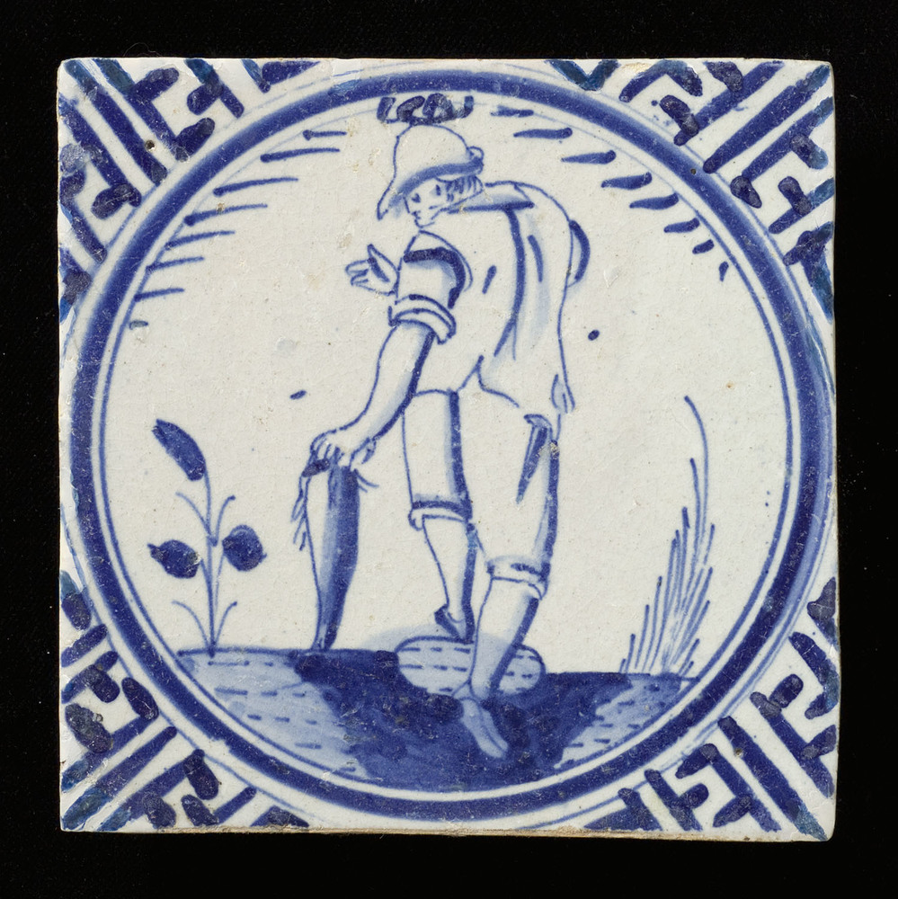 tegel van keramiek in onderglazuur, voorstellende: p...