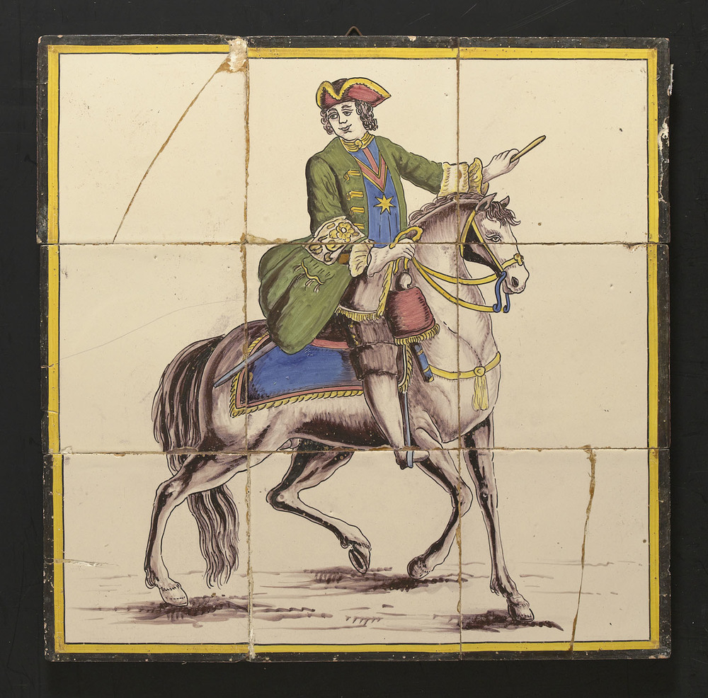 Tegel van keramiek, tinglazuur, voorstellende een be...