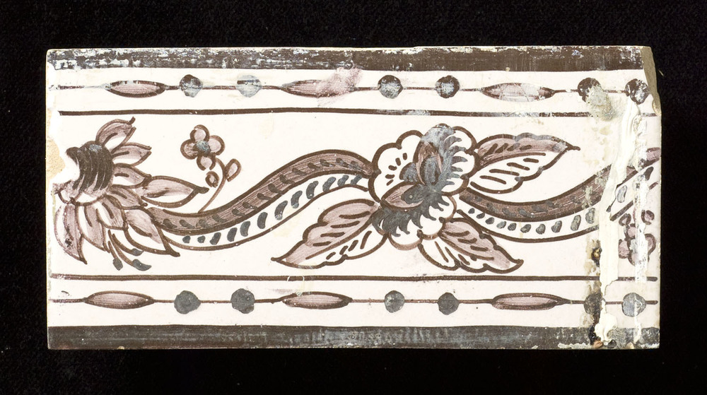 Tegel in tinglazuur, voorstellende bloemendecoar, ca...