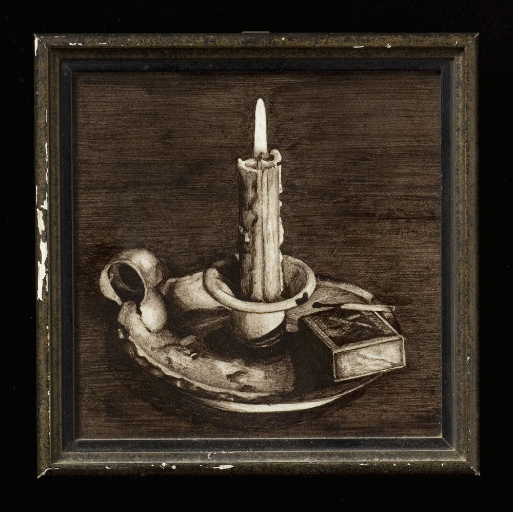 Tegel, onderglazuur, voorstellende kaars in blaker m...