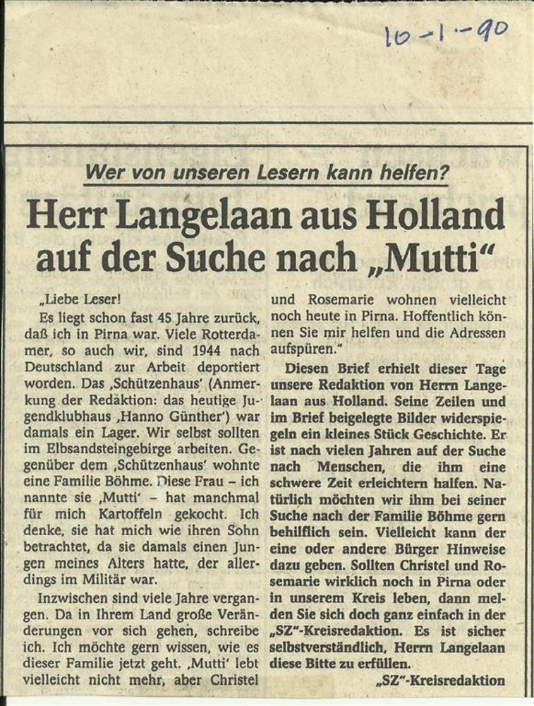 Herr Langelaan aus Holland auf der Suche nach "Mutti