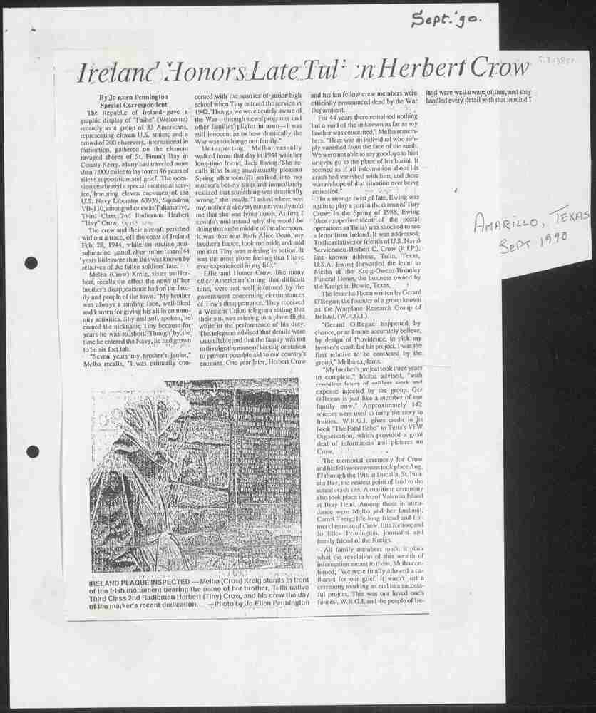"Ireland honours late Tulian Herbert Crow" (kopie va...