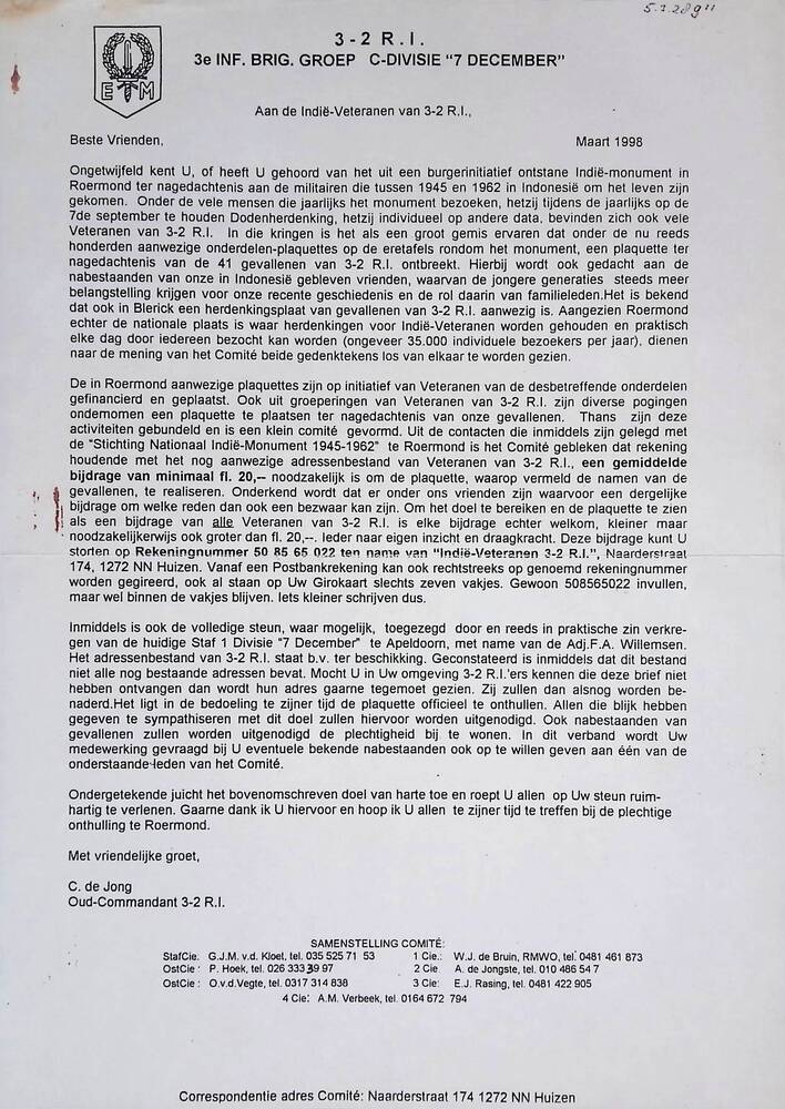 1ste Divisie 7 december - aan de Indië-veteranen van...